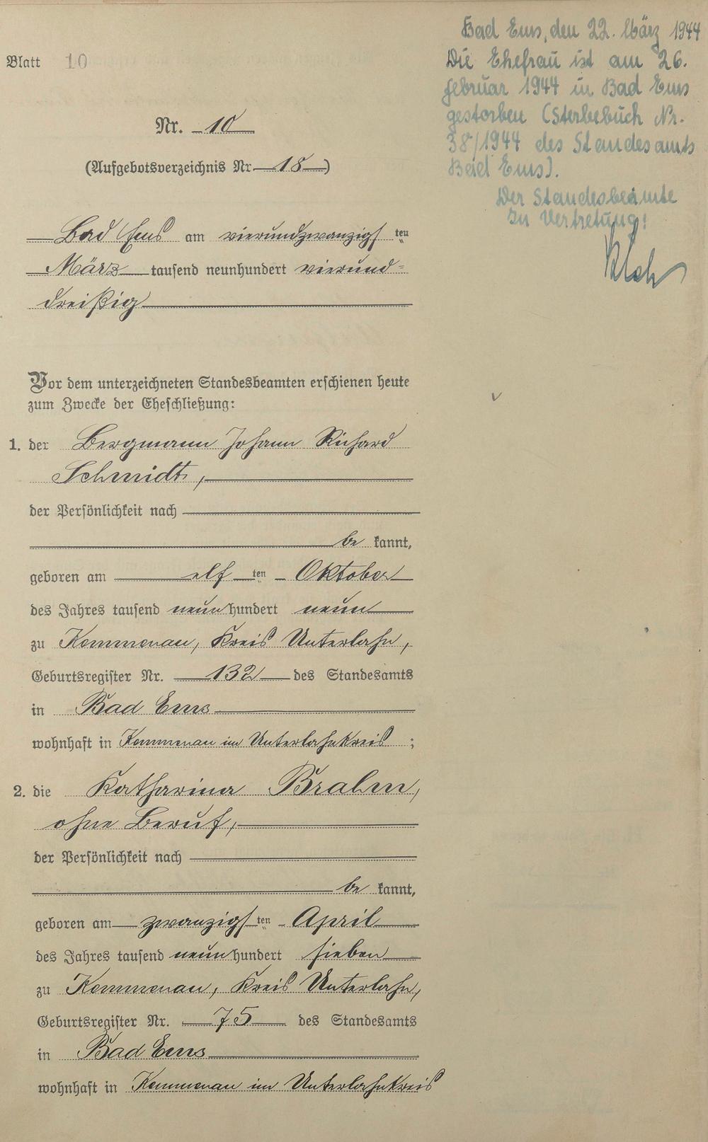 Heiratsregister 1934
