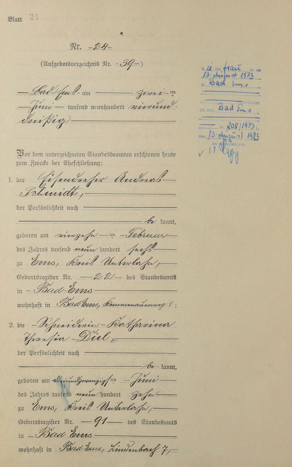Heiratsregister 1934