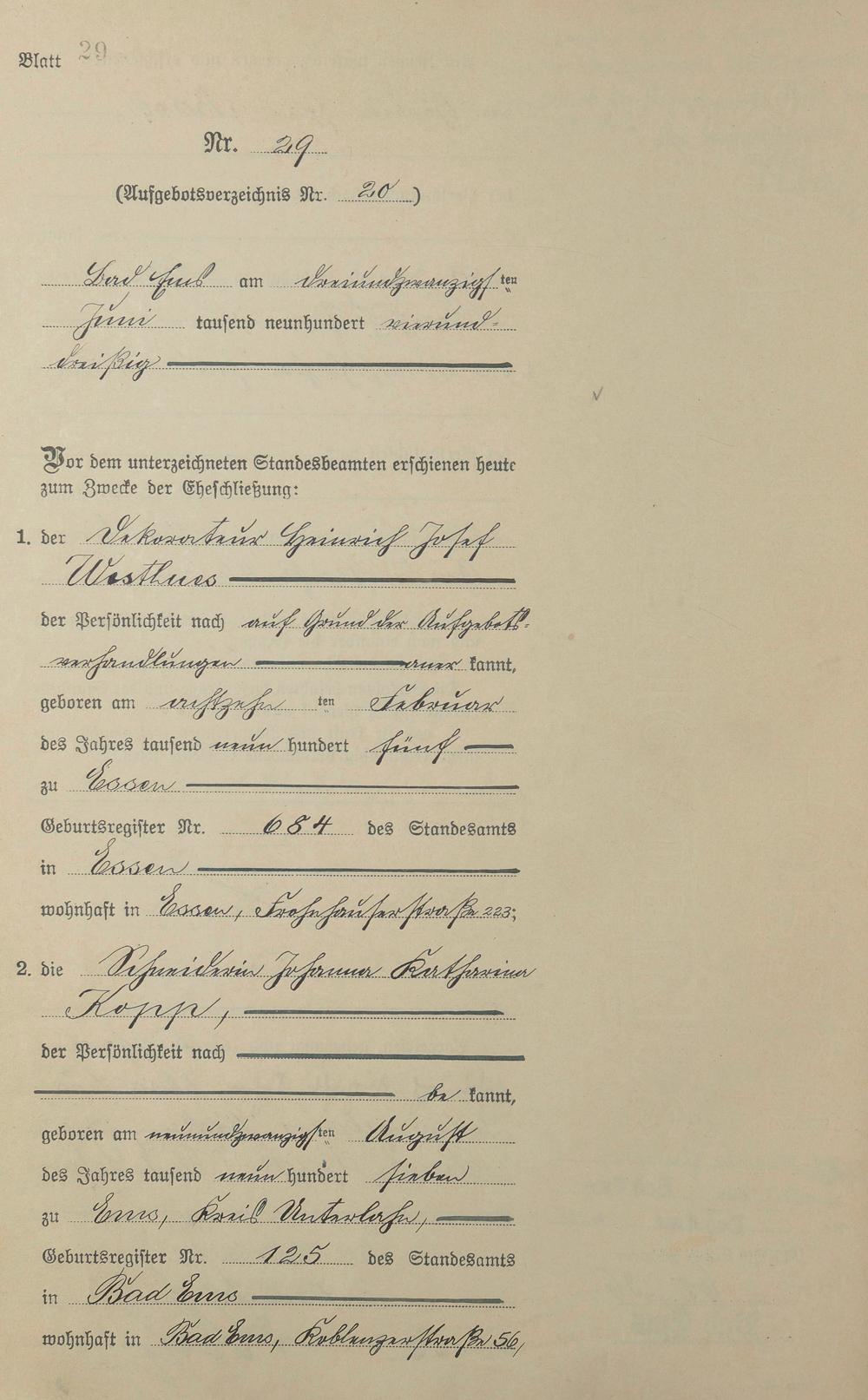 Heiratsregister 1934