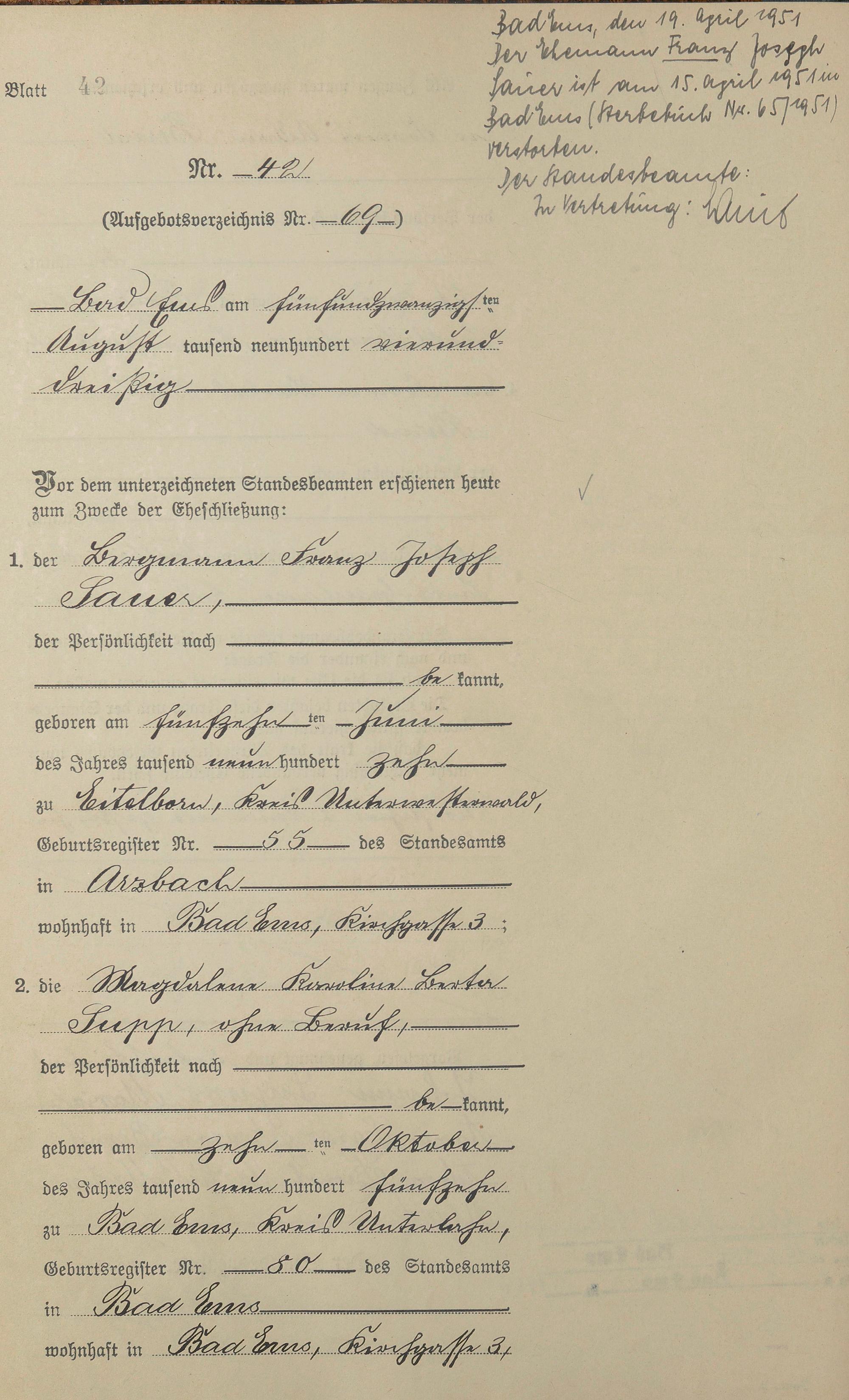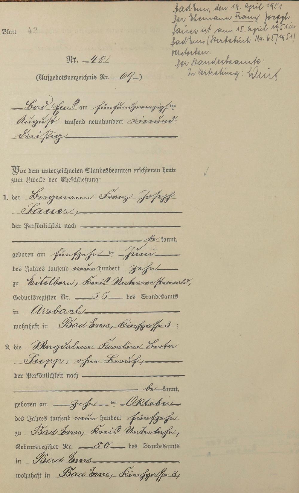 Heiratsregister 1934
