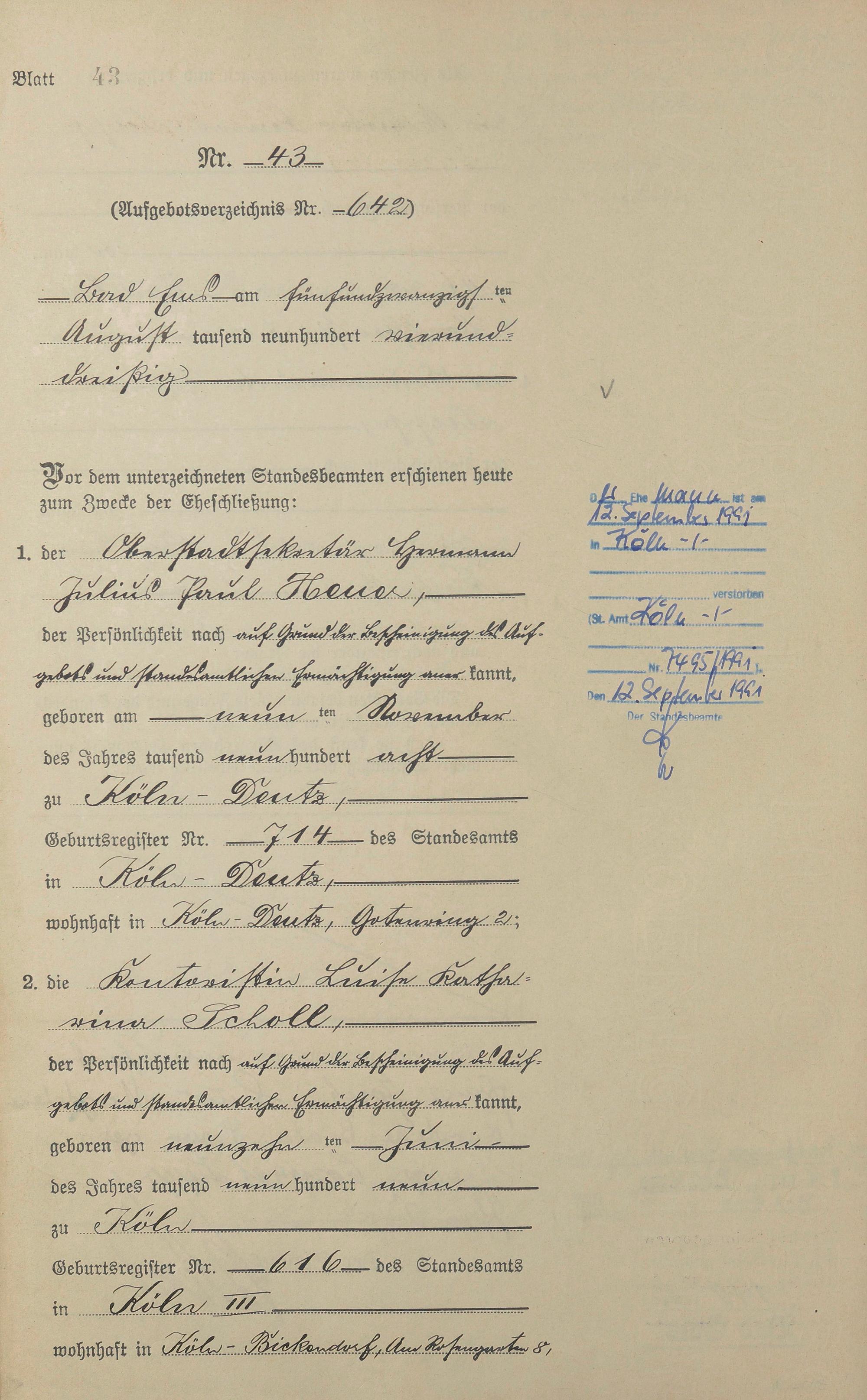 Heiratsregister 1934