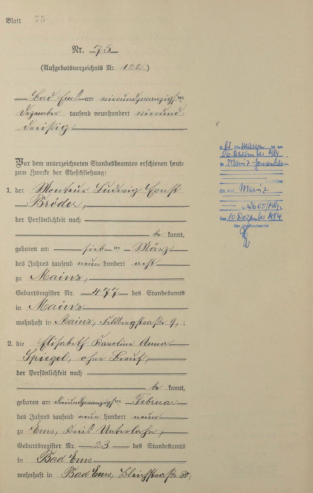 Heiratsregister 1934