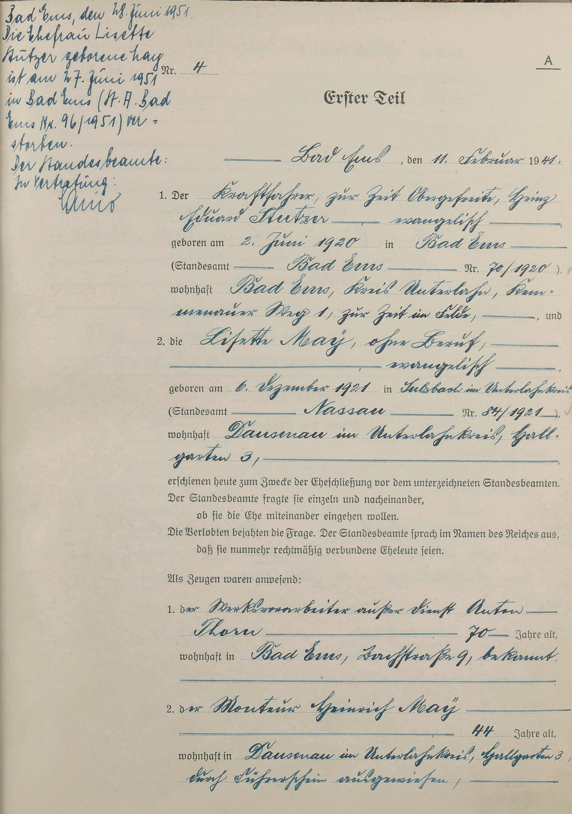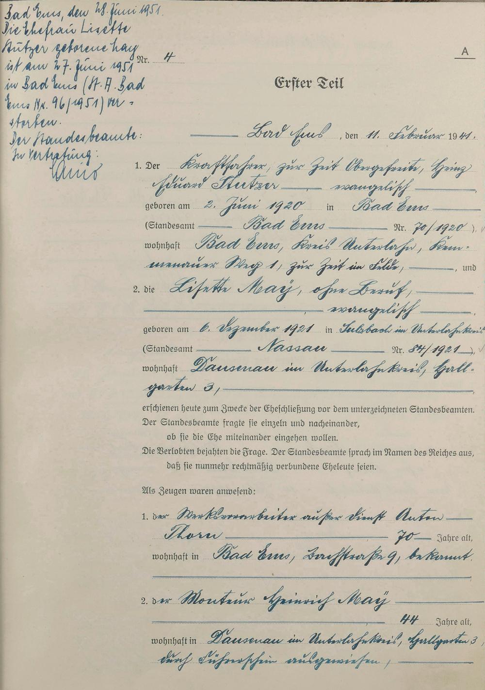 Heiratsregister 1941