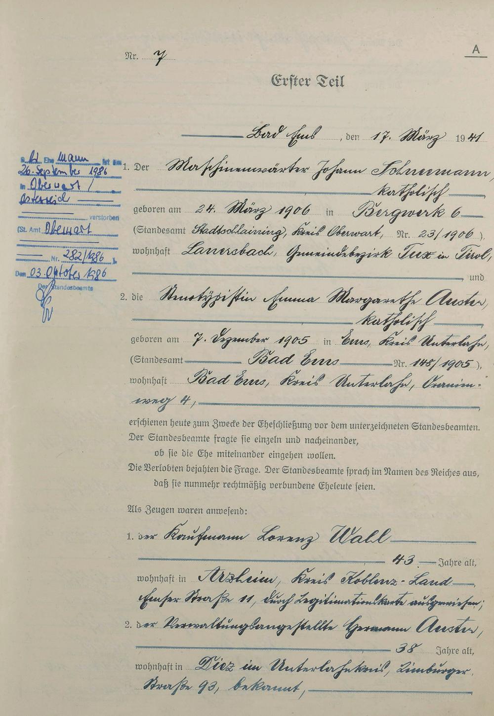 Heiratsregister 1941