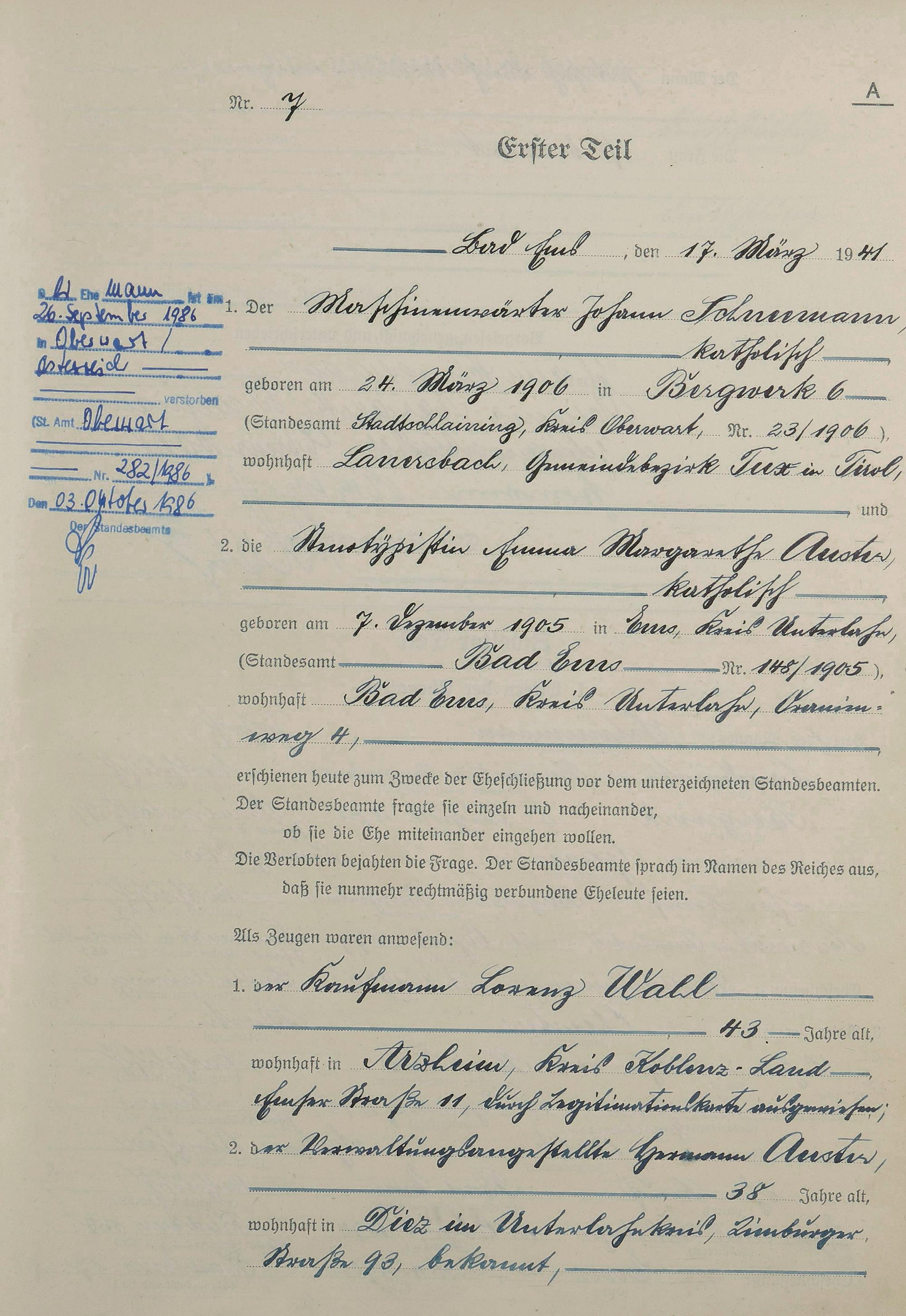 1417: Heiratsregister 1941