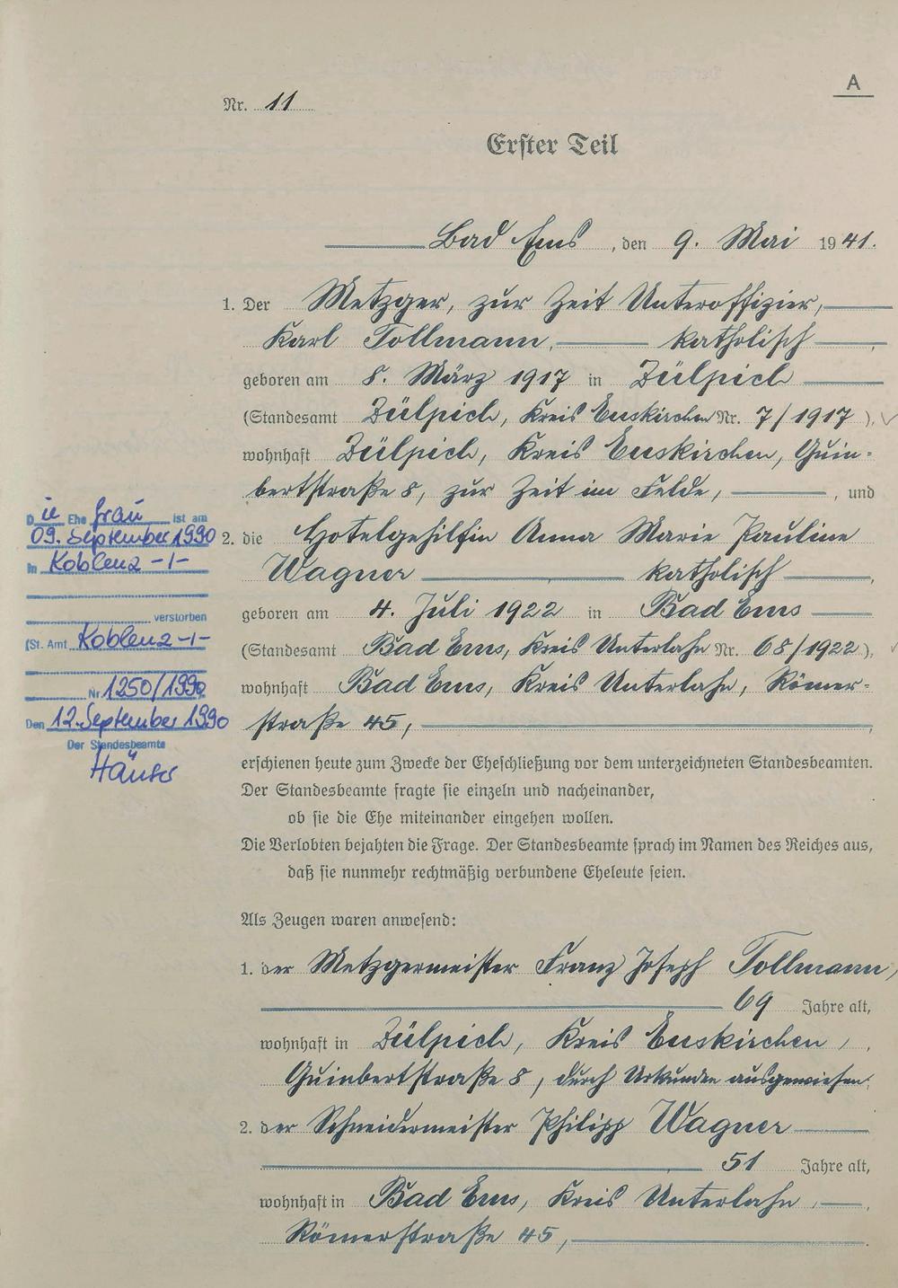 Heiratsregister 1941
