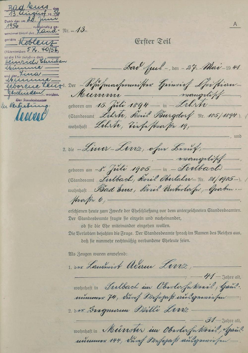 Heiratsregister 1941