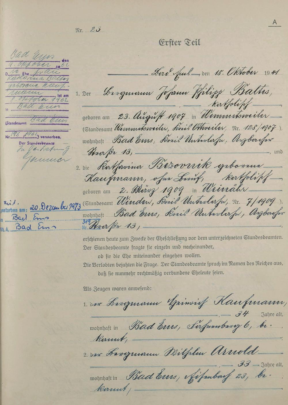 Heiratsregister 1941