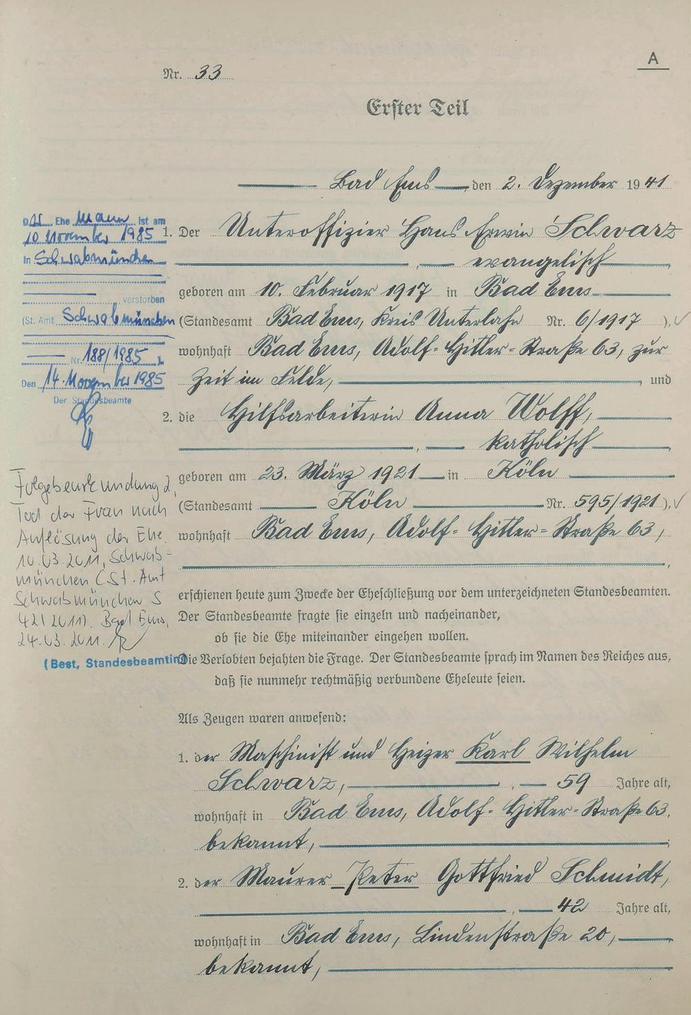 Heiratsregister 1941