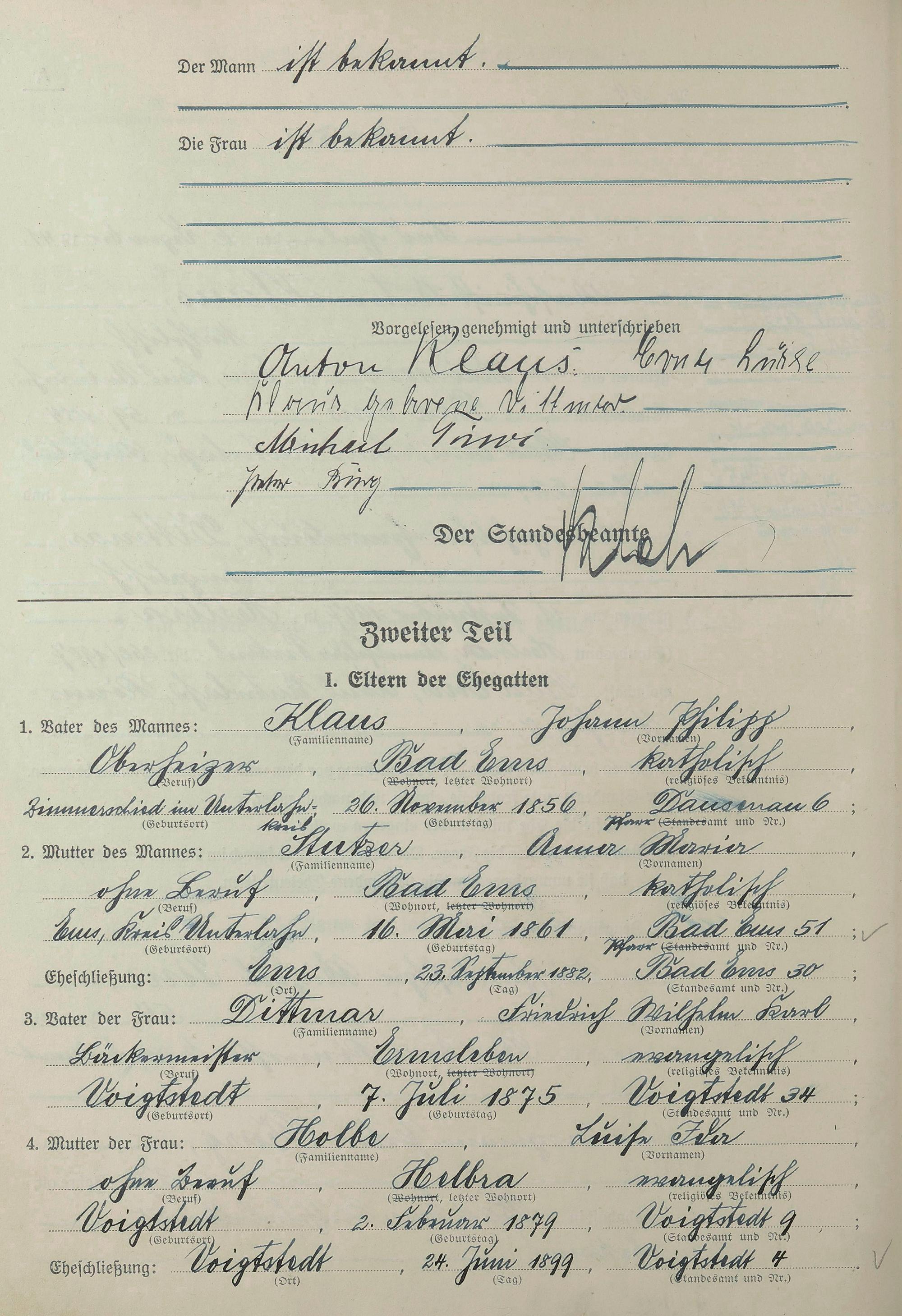 Heiratsregister 1941