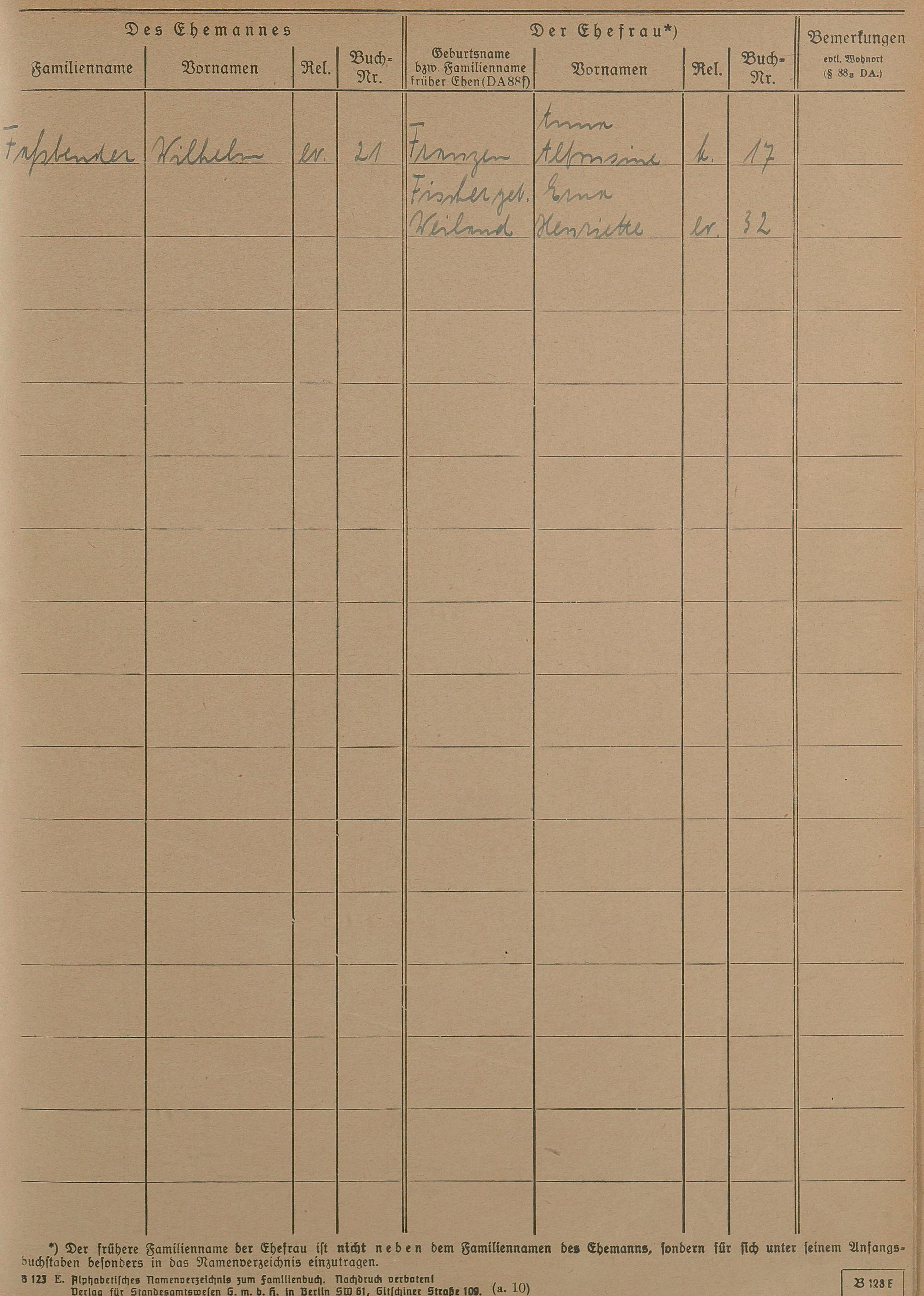 Heiratsregister 1941