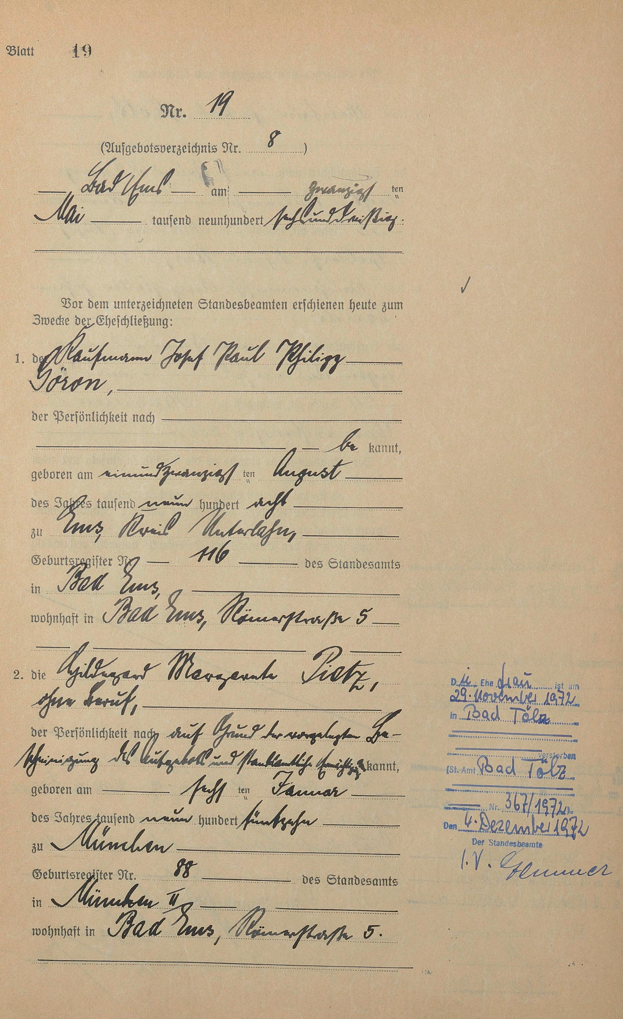 Heiratsregister 1936