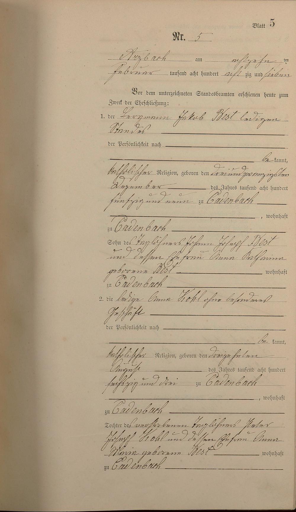 Heiratsregister 1887