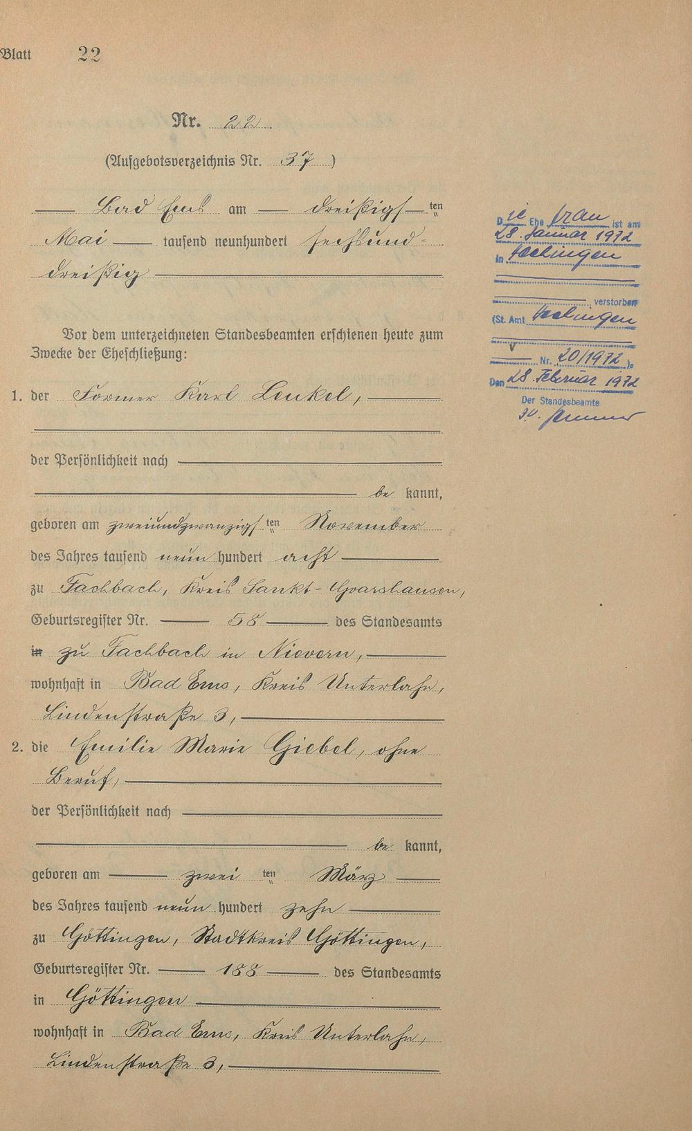 Heiratsregister 1936