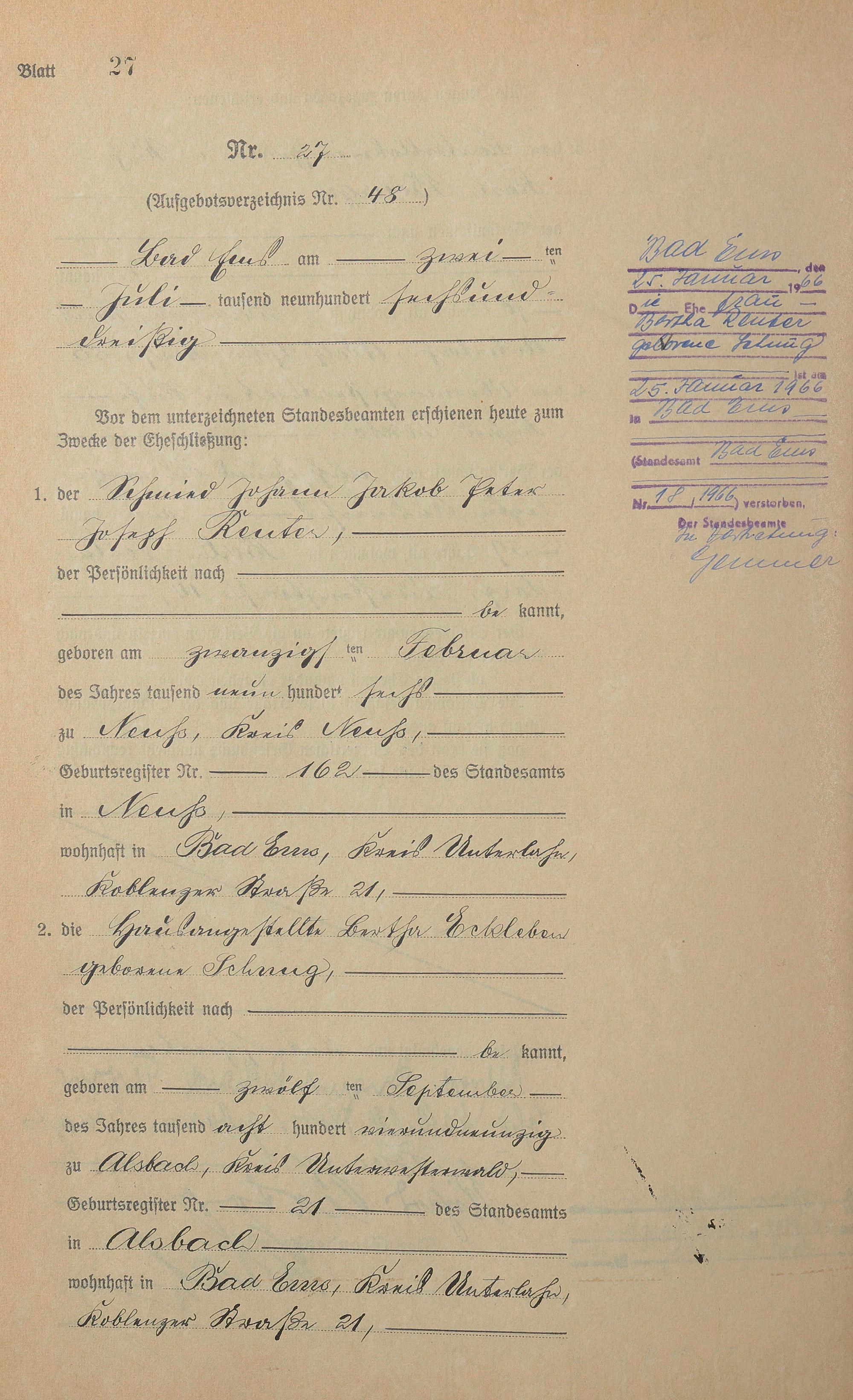 Heiratsregister 1936