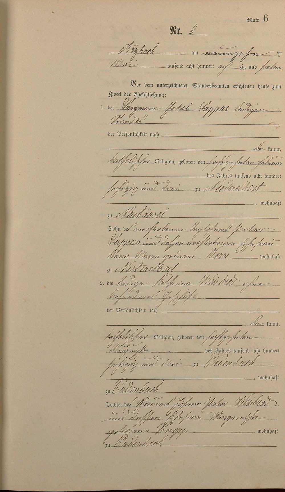 Heiratsregister 1887