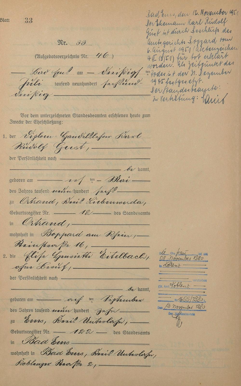 Heiratsregister 1936