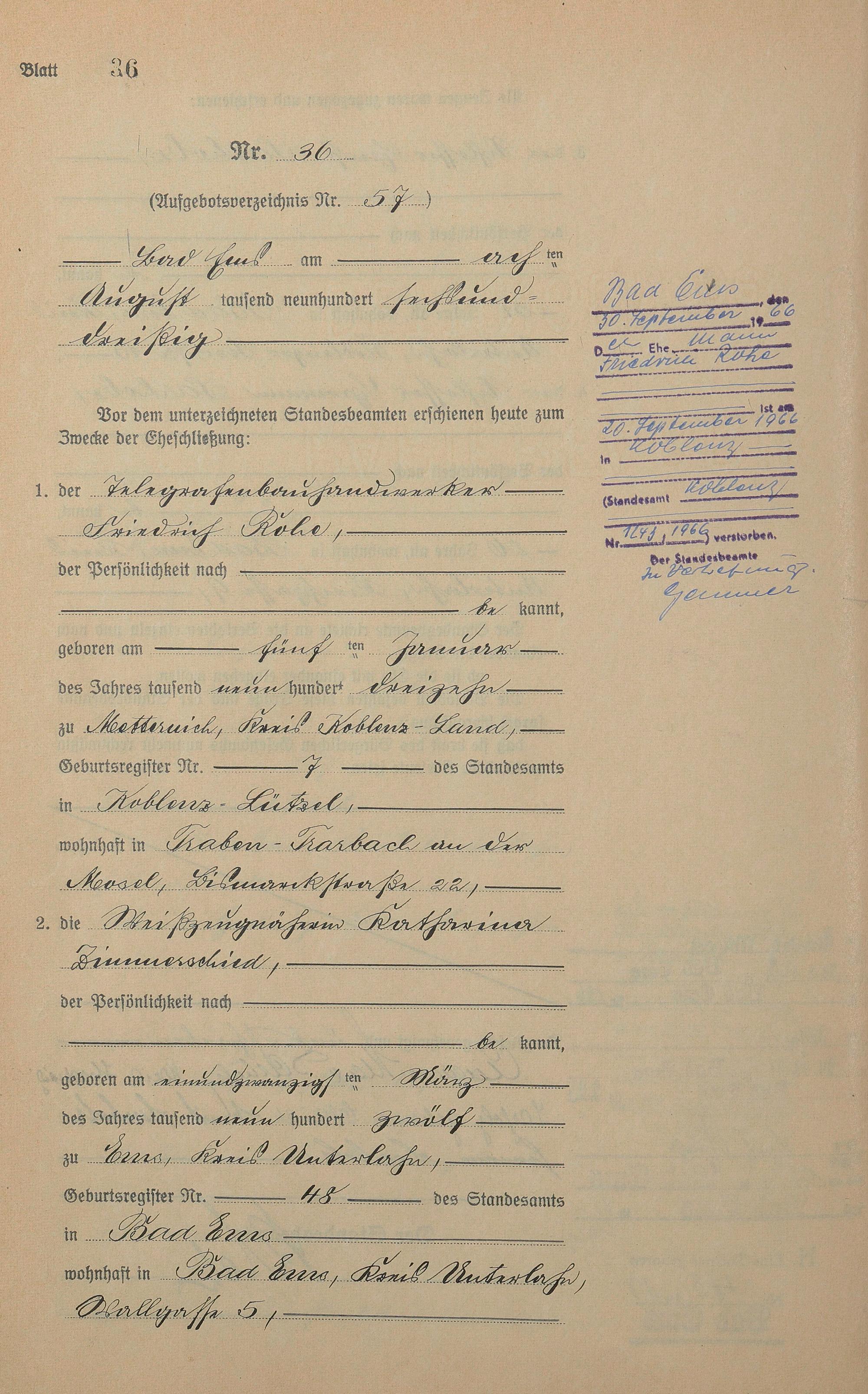 Heiratsregister 1936