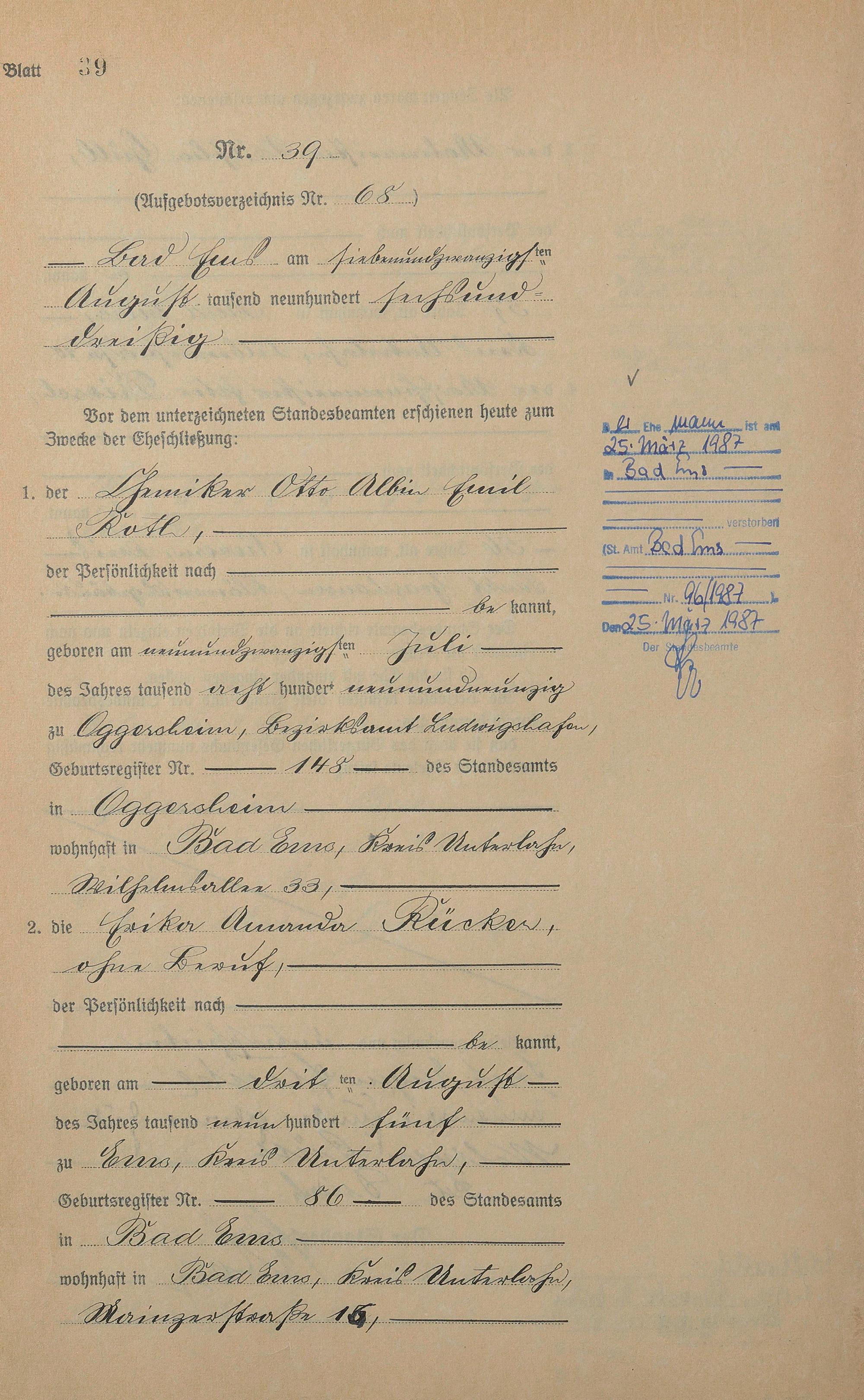Heiratsregister 1936