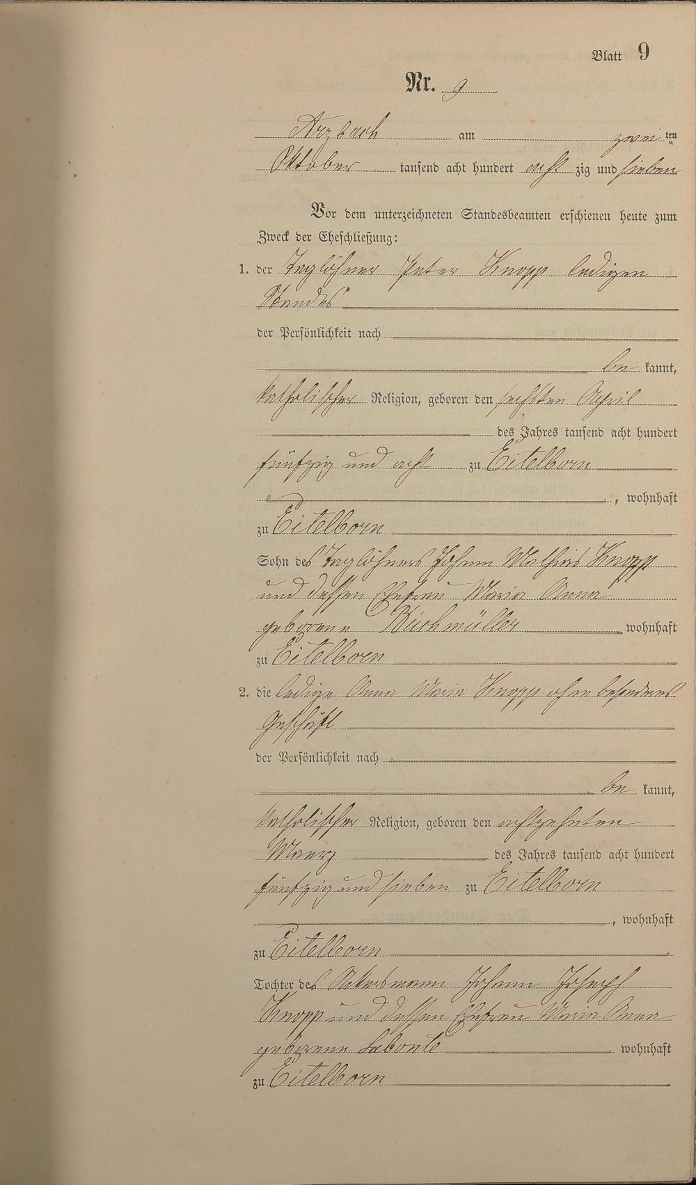 Heiratsregister 1887