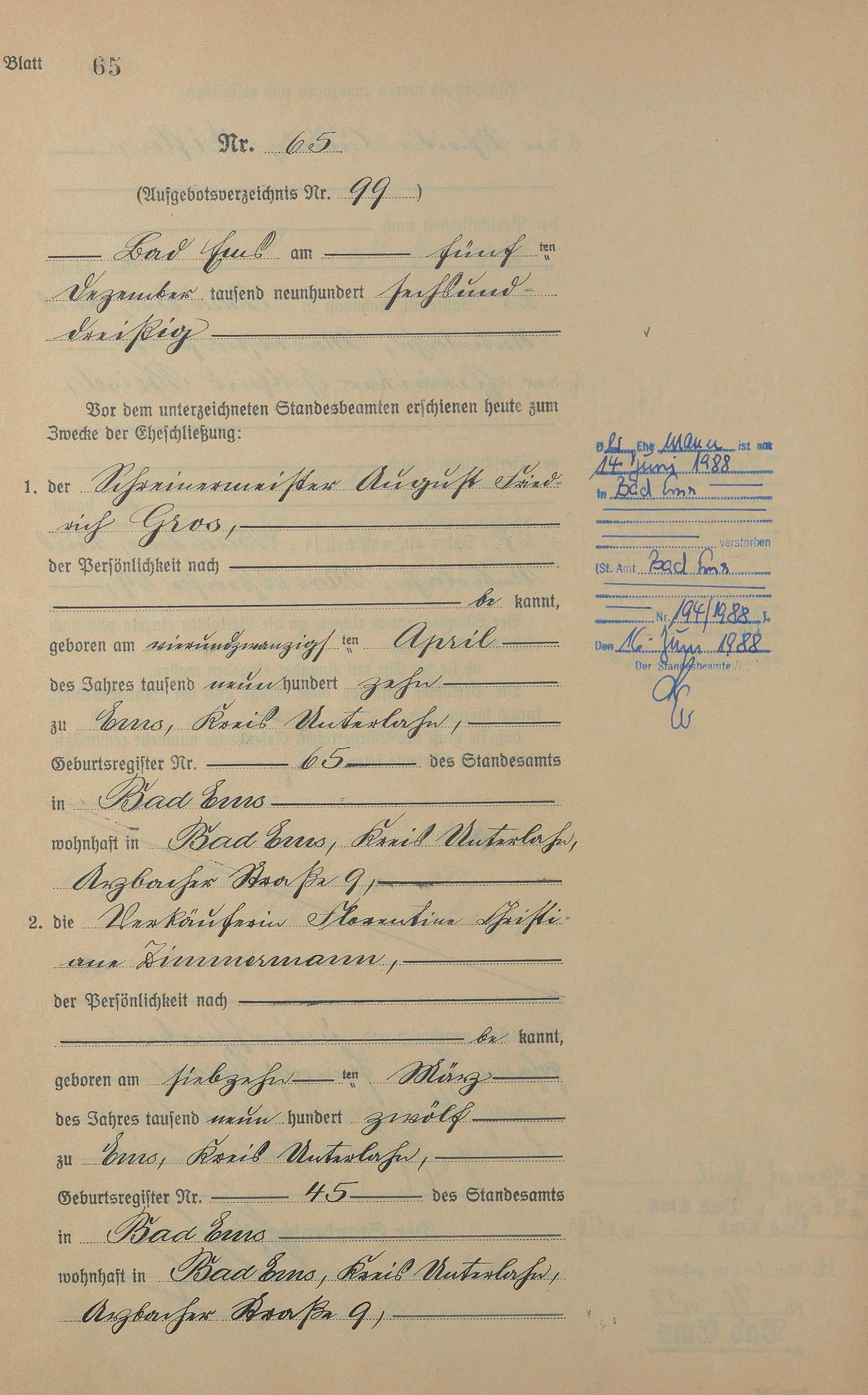 Heiratsregister 1936