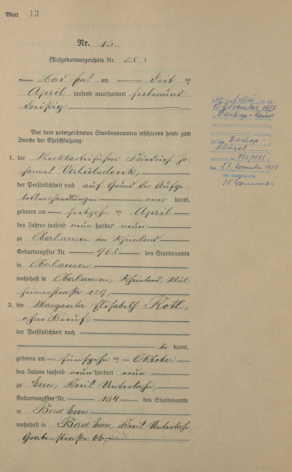 Heiratsregister 1937