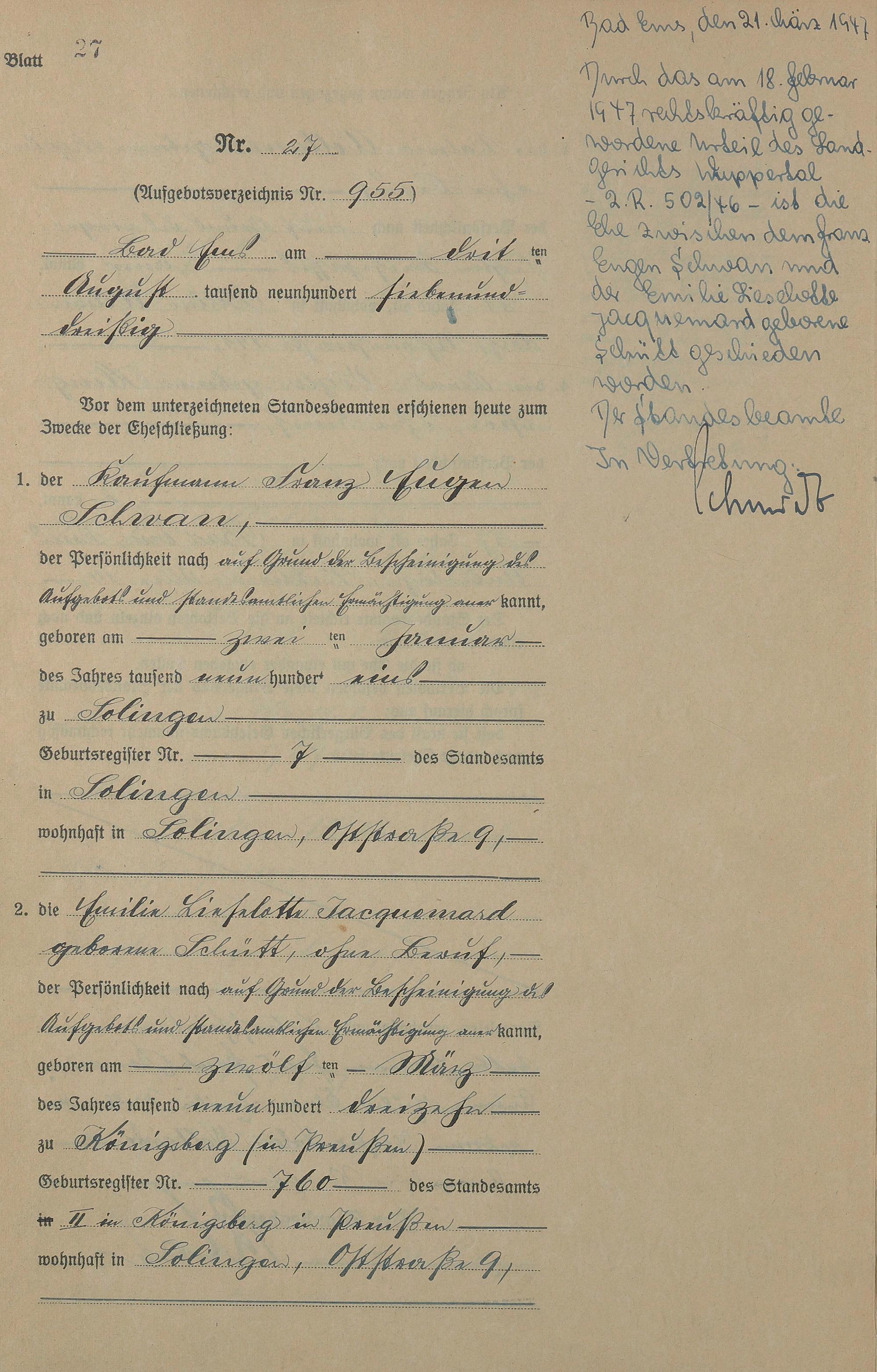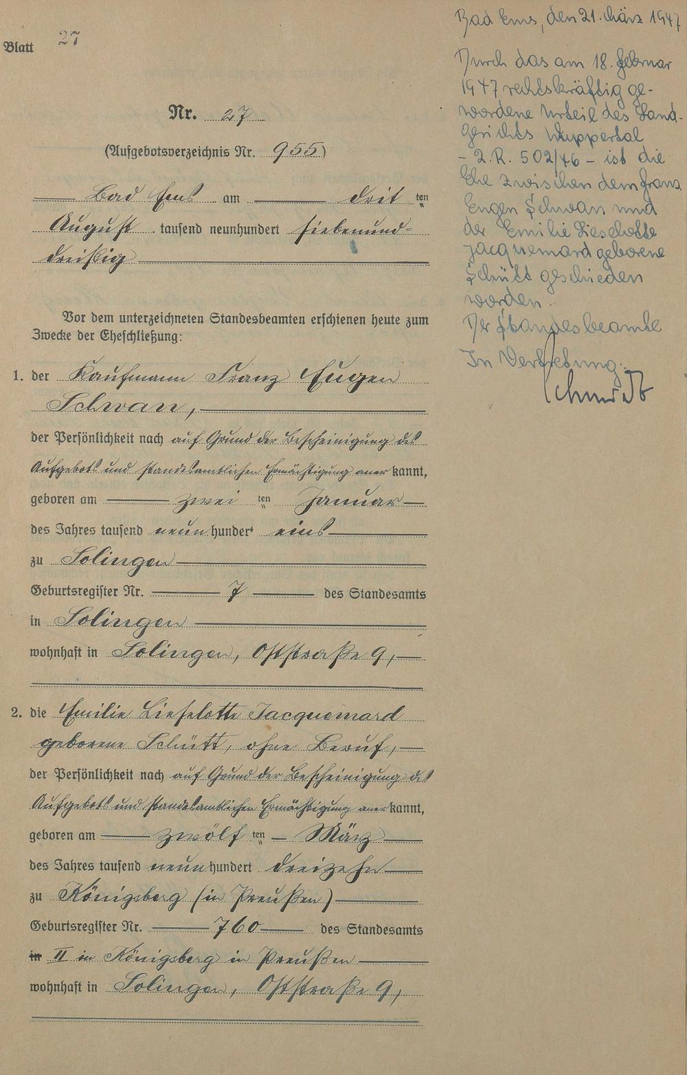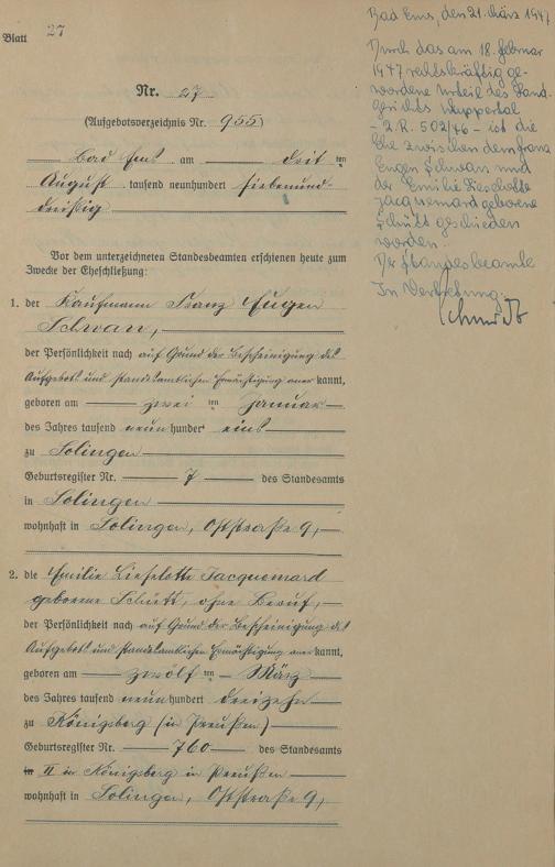 Heiratsregister 1937