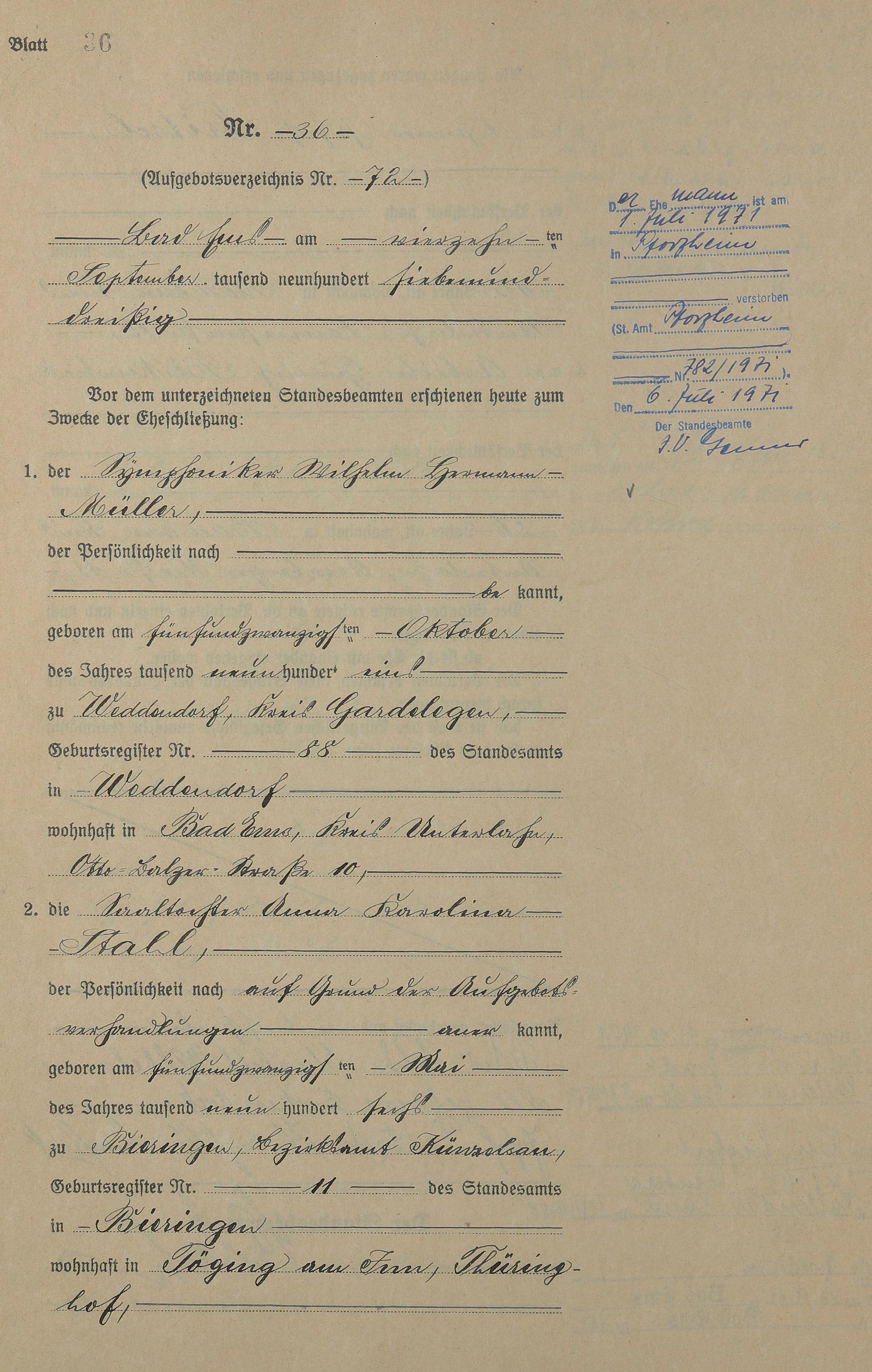 Heiratsregister 1937