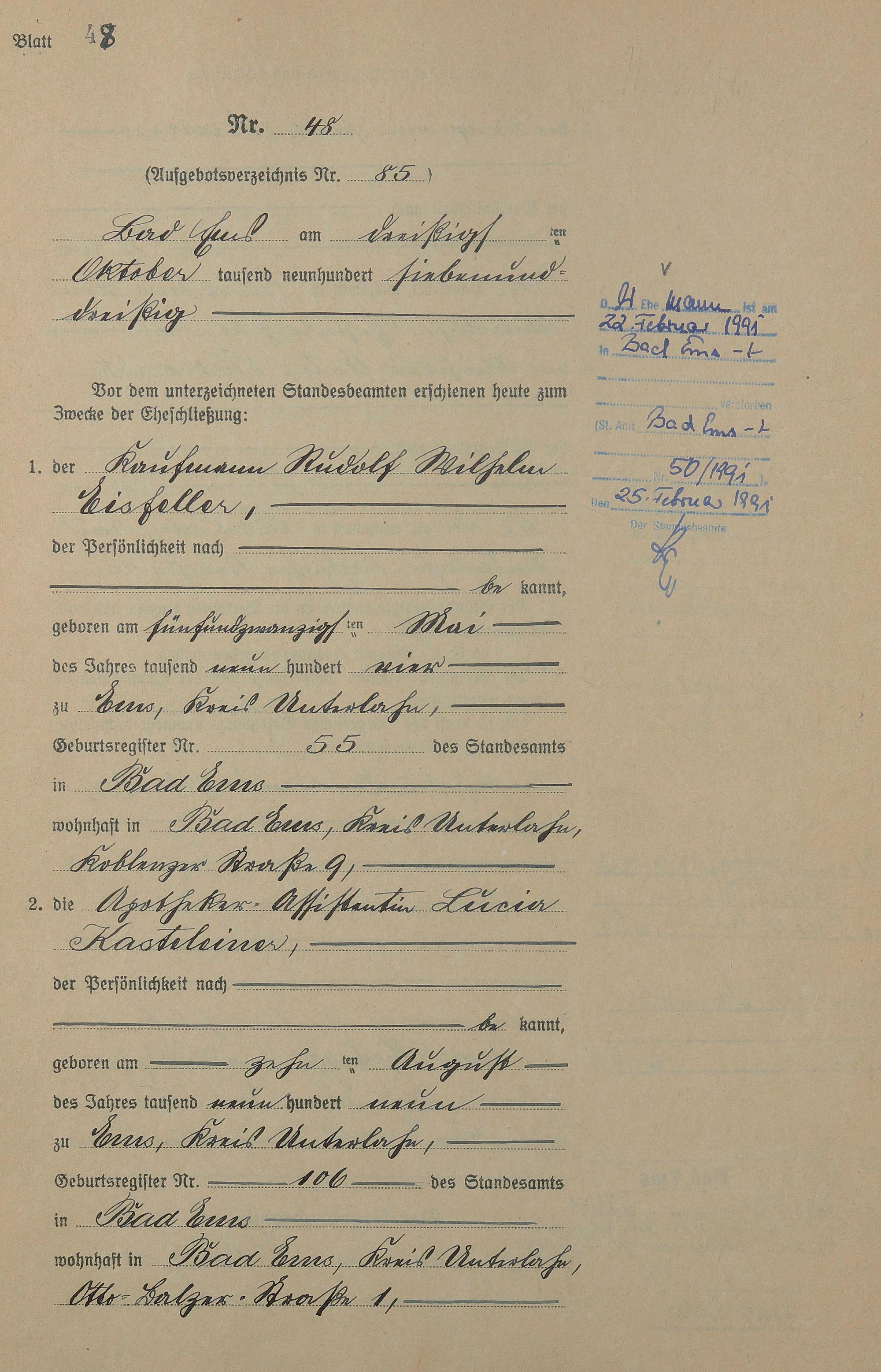 Heiratsregister 1937