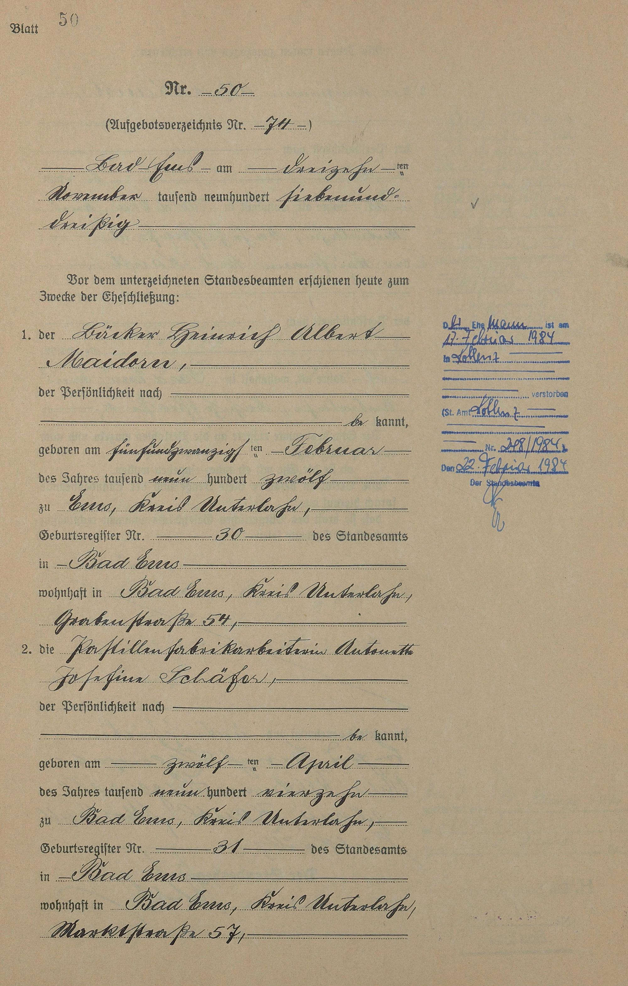 Heiratsregister 1937