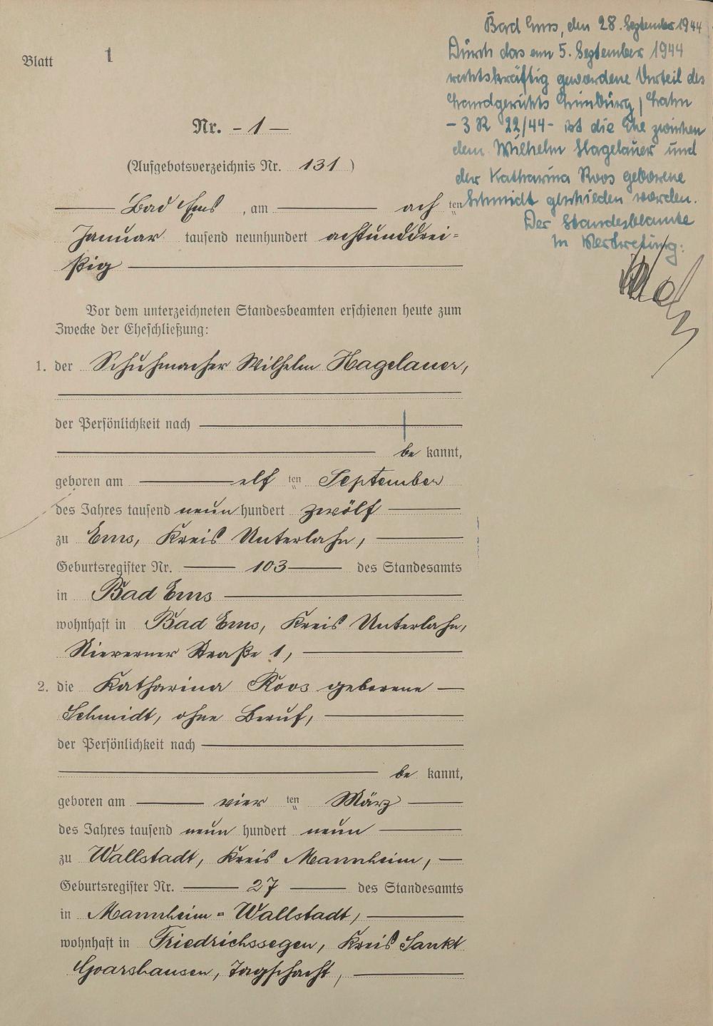 1414: Heiratsregister 1938