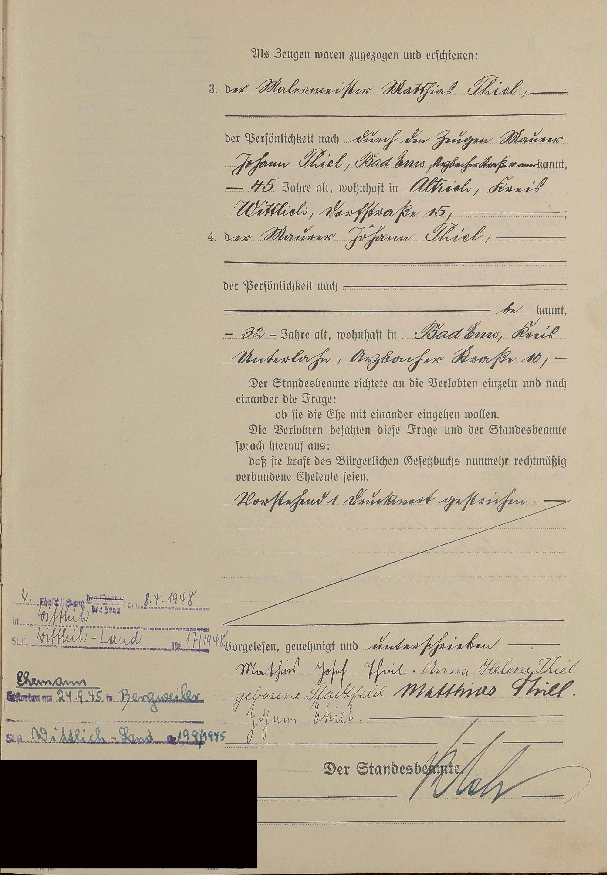 Heiratsregister 1938