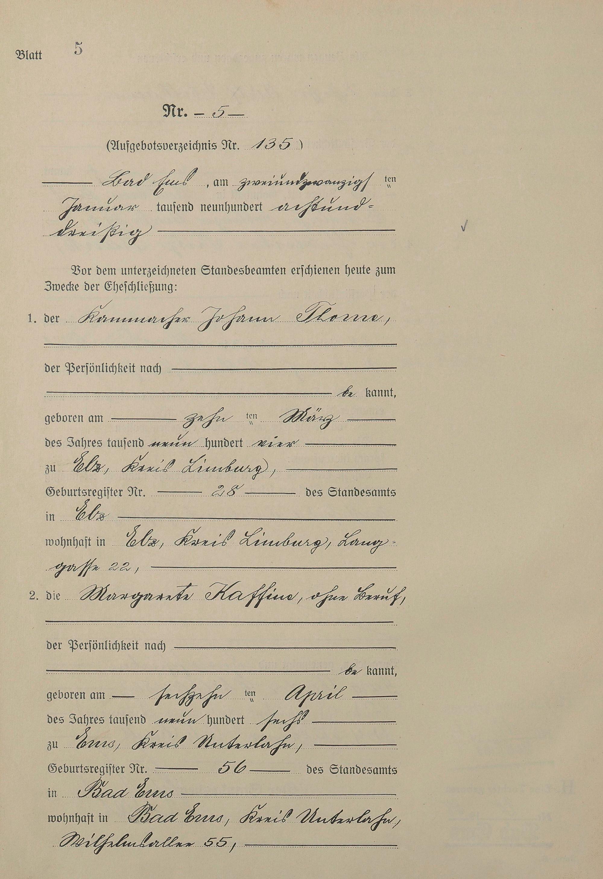 Heiratsregister 1938