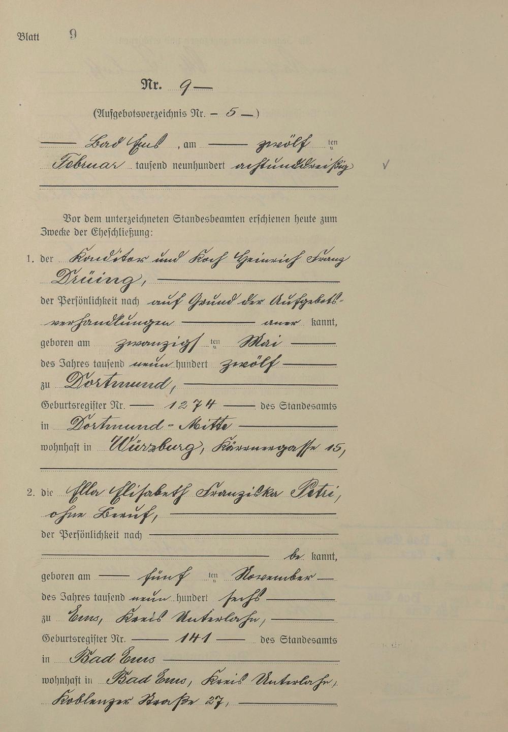 Heiratsregister 1938