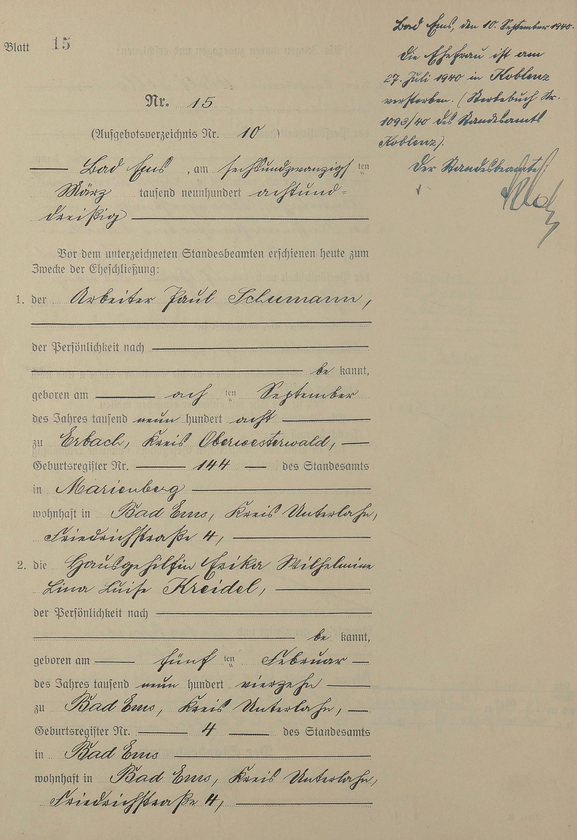 Heiratsregister 1938
