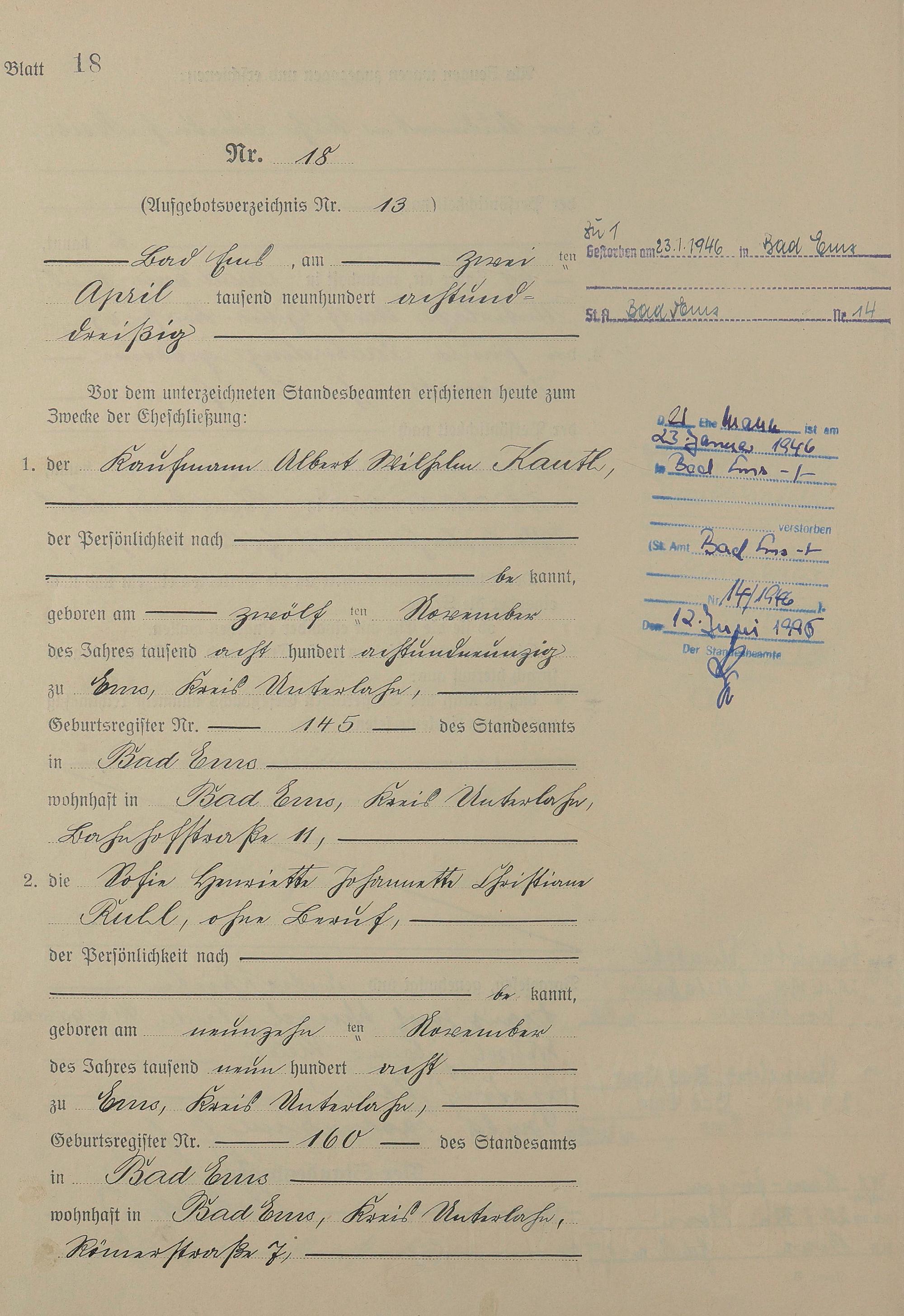 Heiratsregister 1938