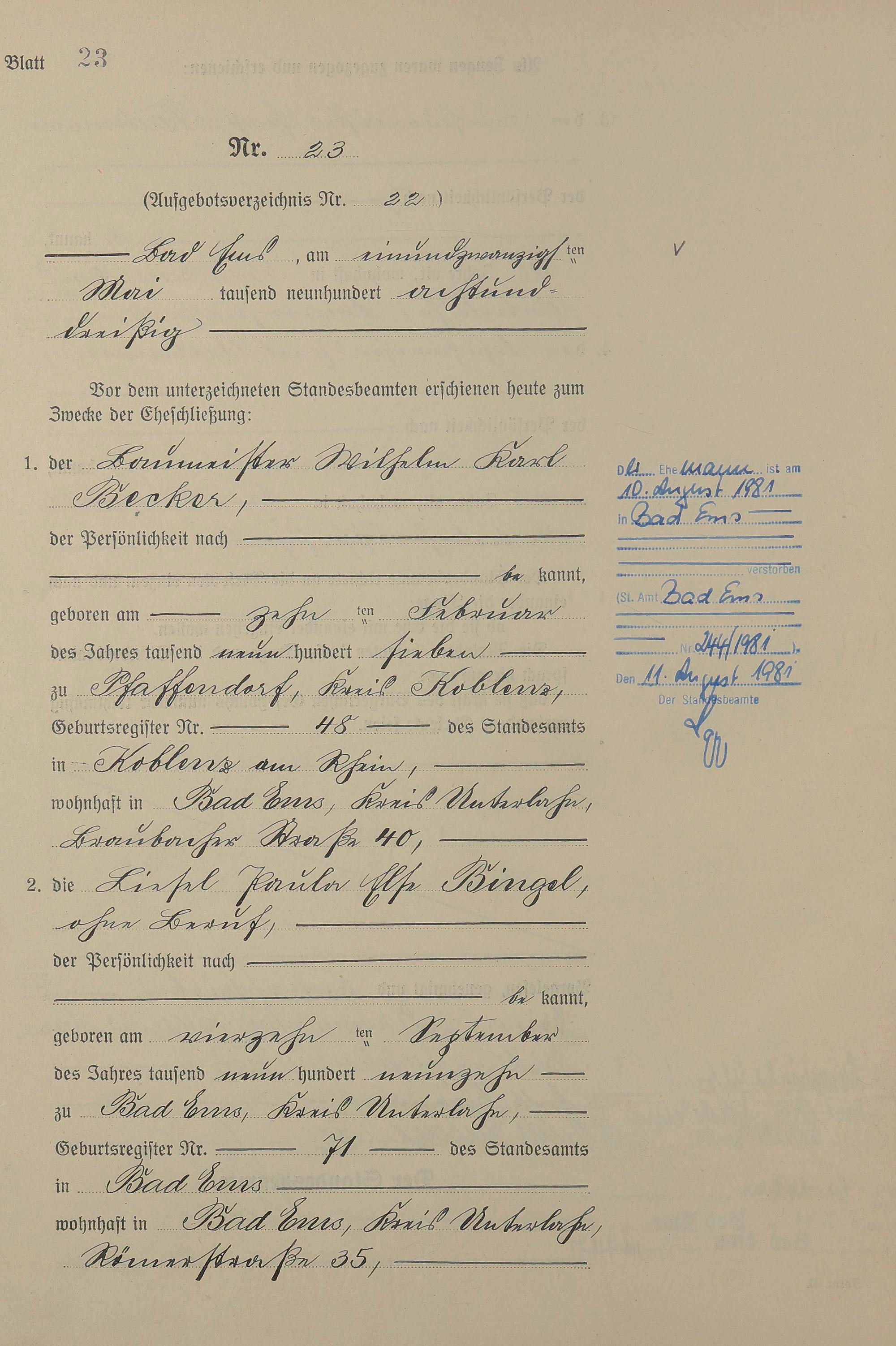 Heiratsregister 1938