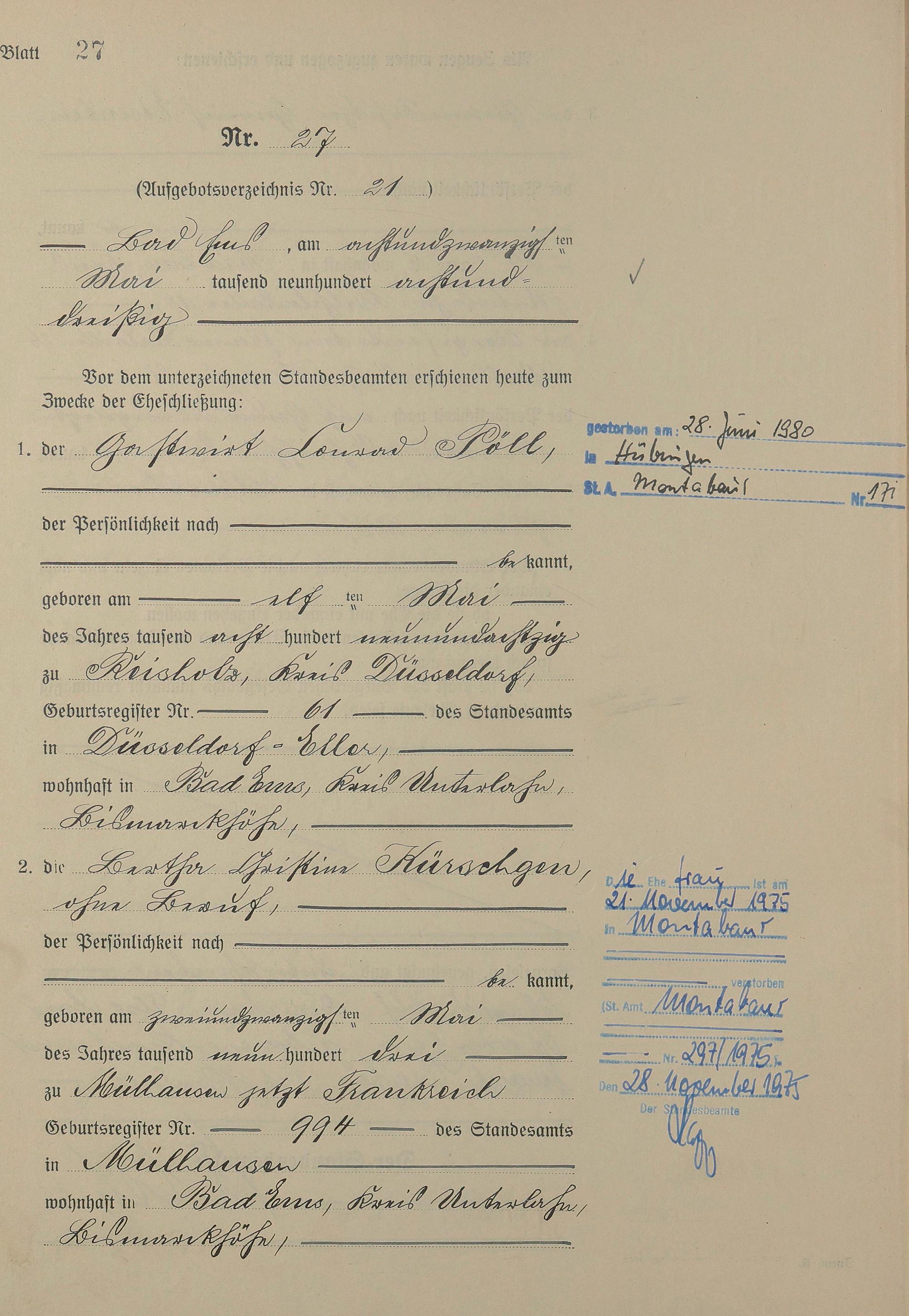Heiratsregister 1938