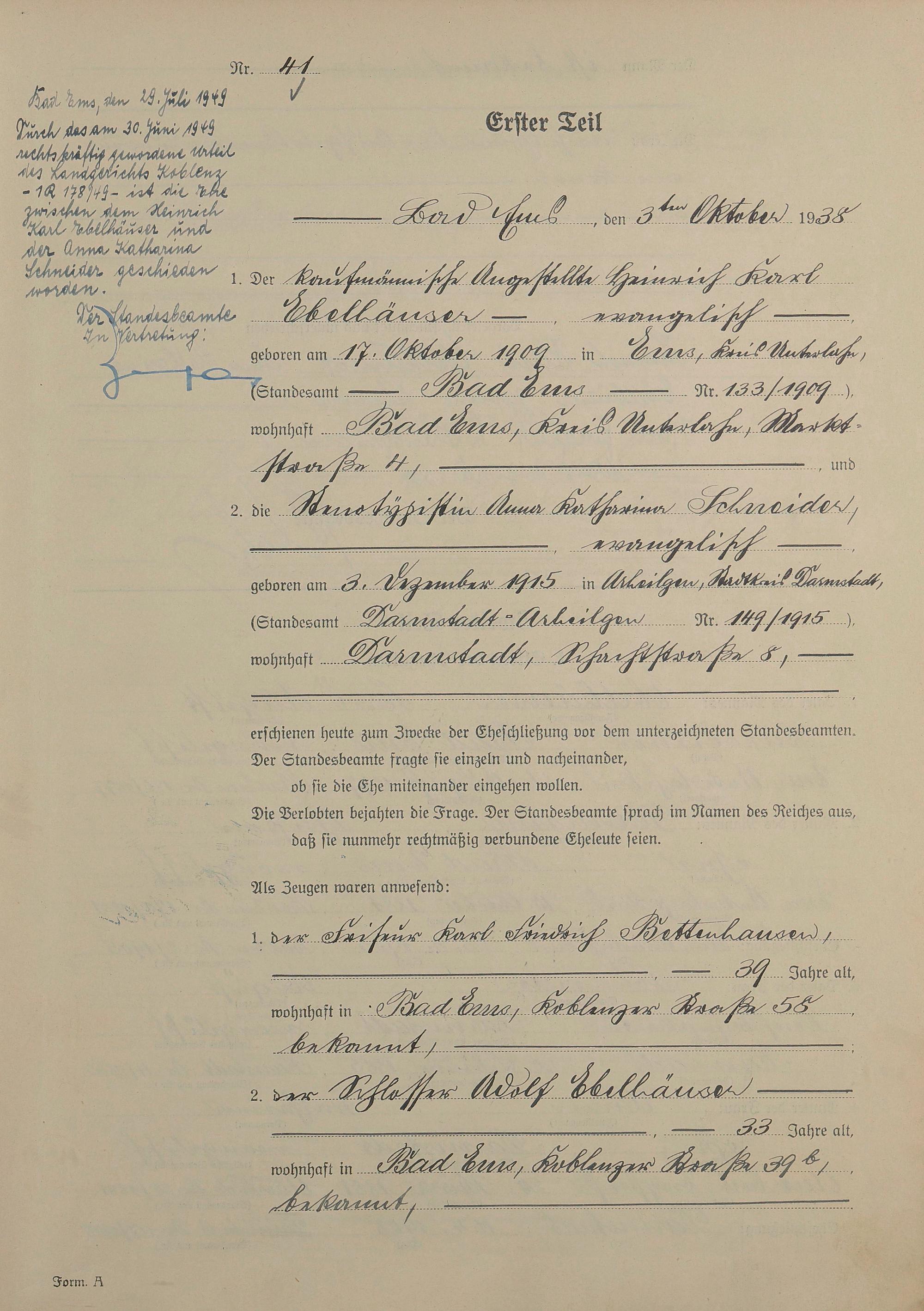 1414: Heiratsregister 1938