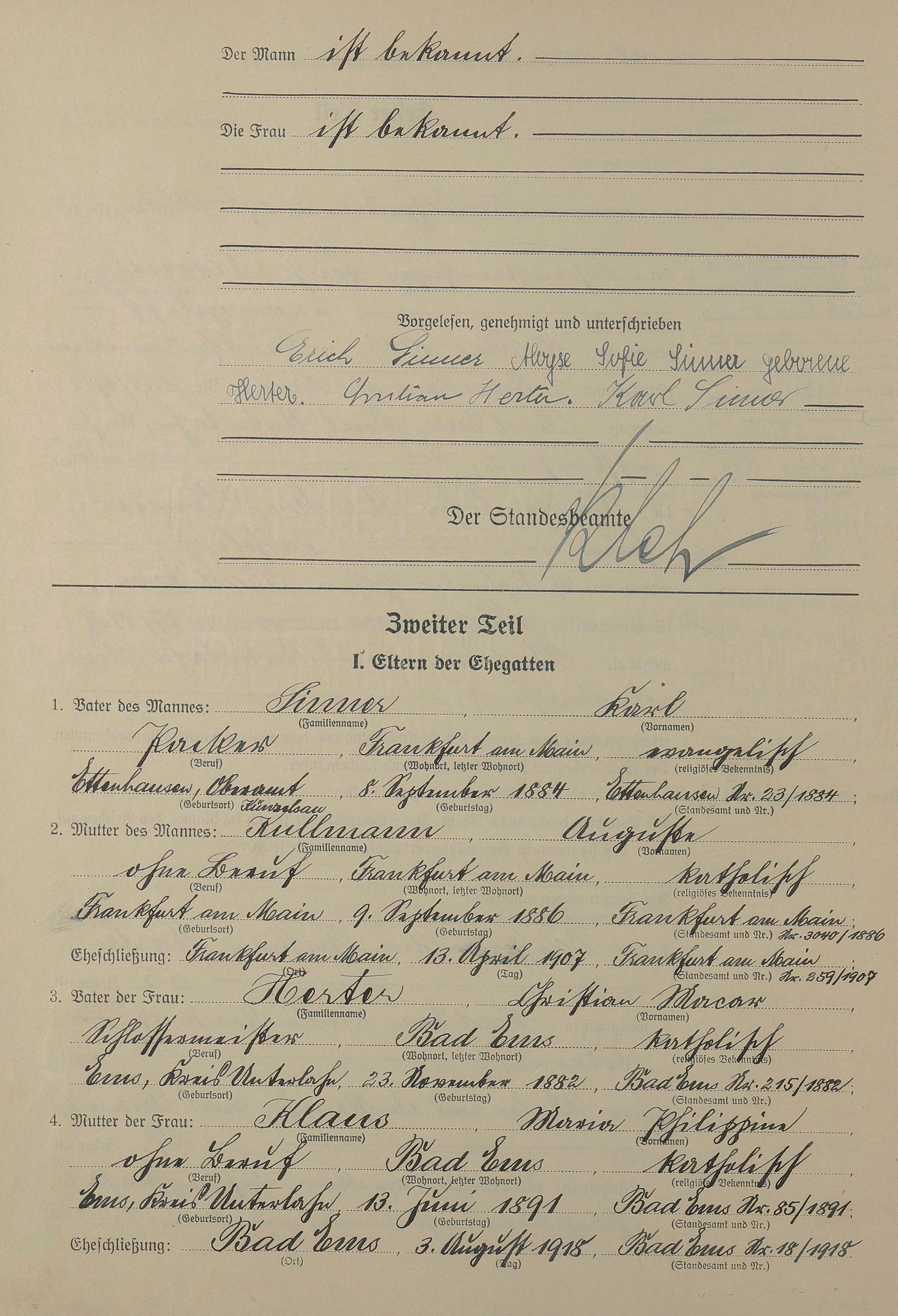 Heiratsregister 1938
