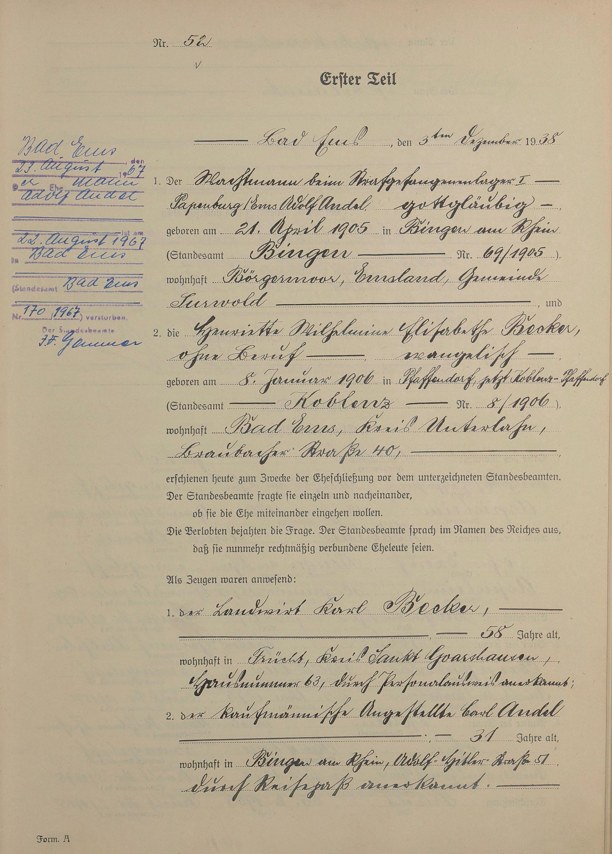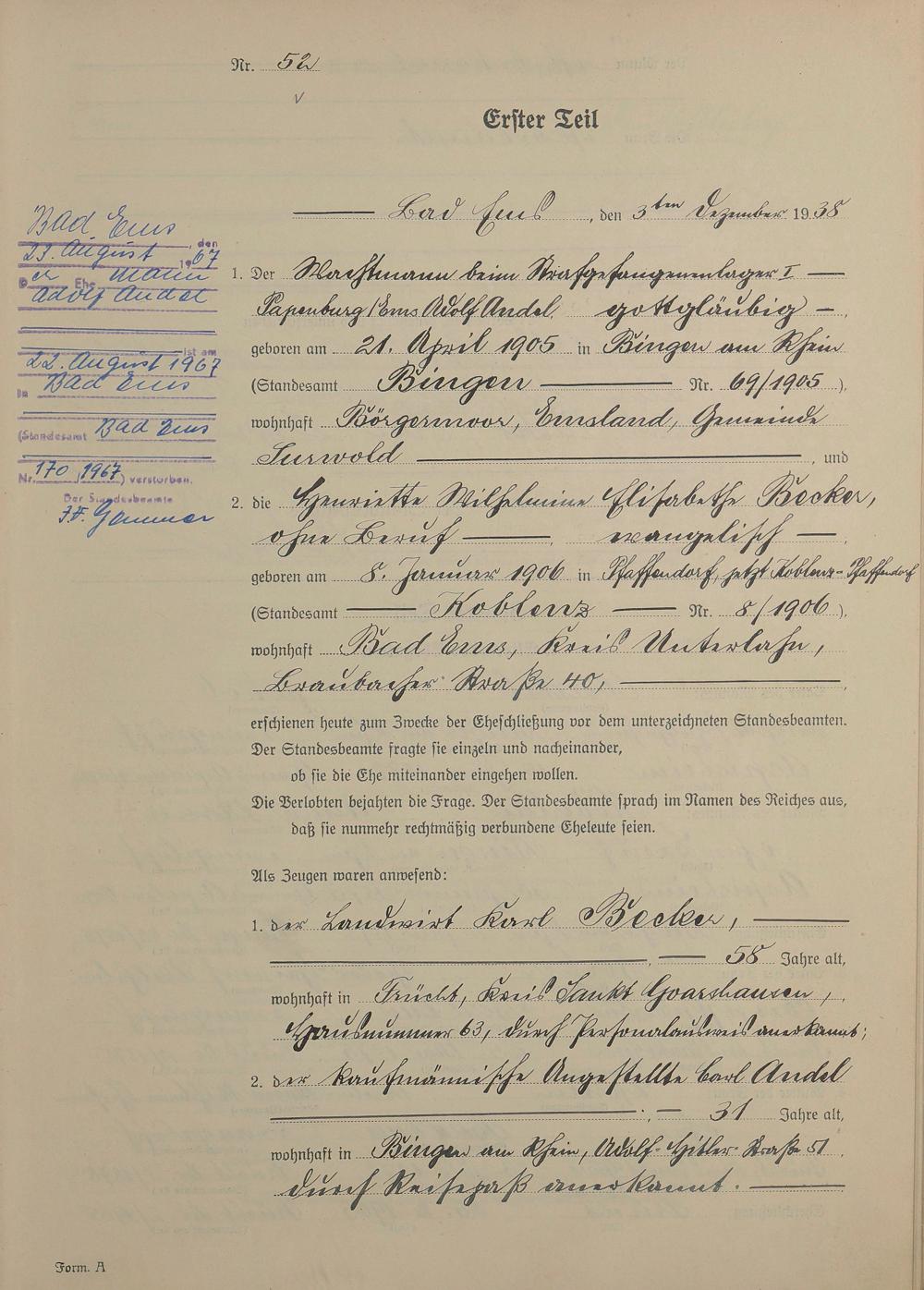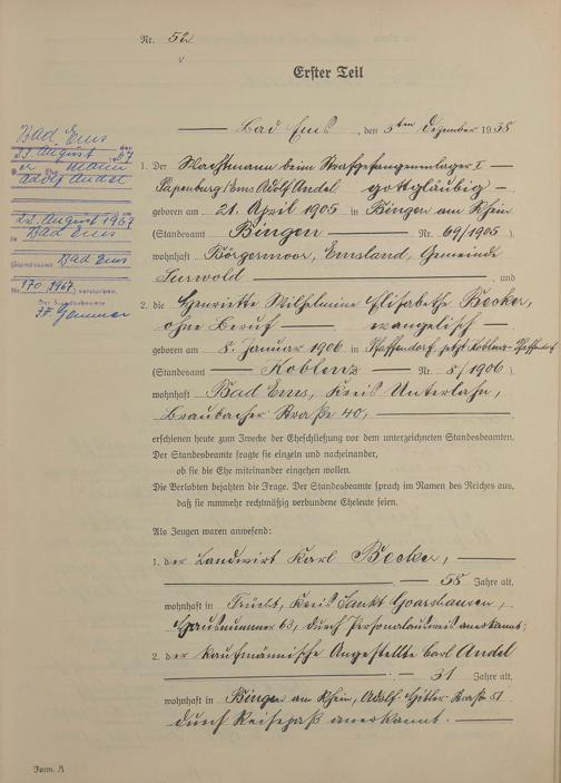 Heiratsregister 1938
