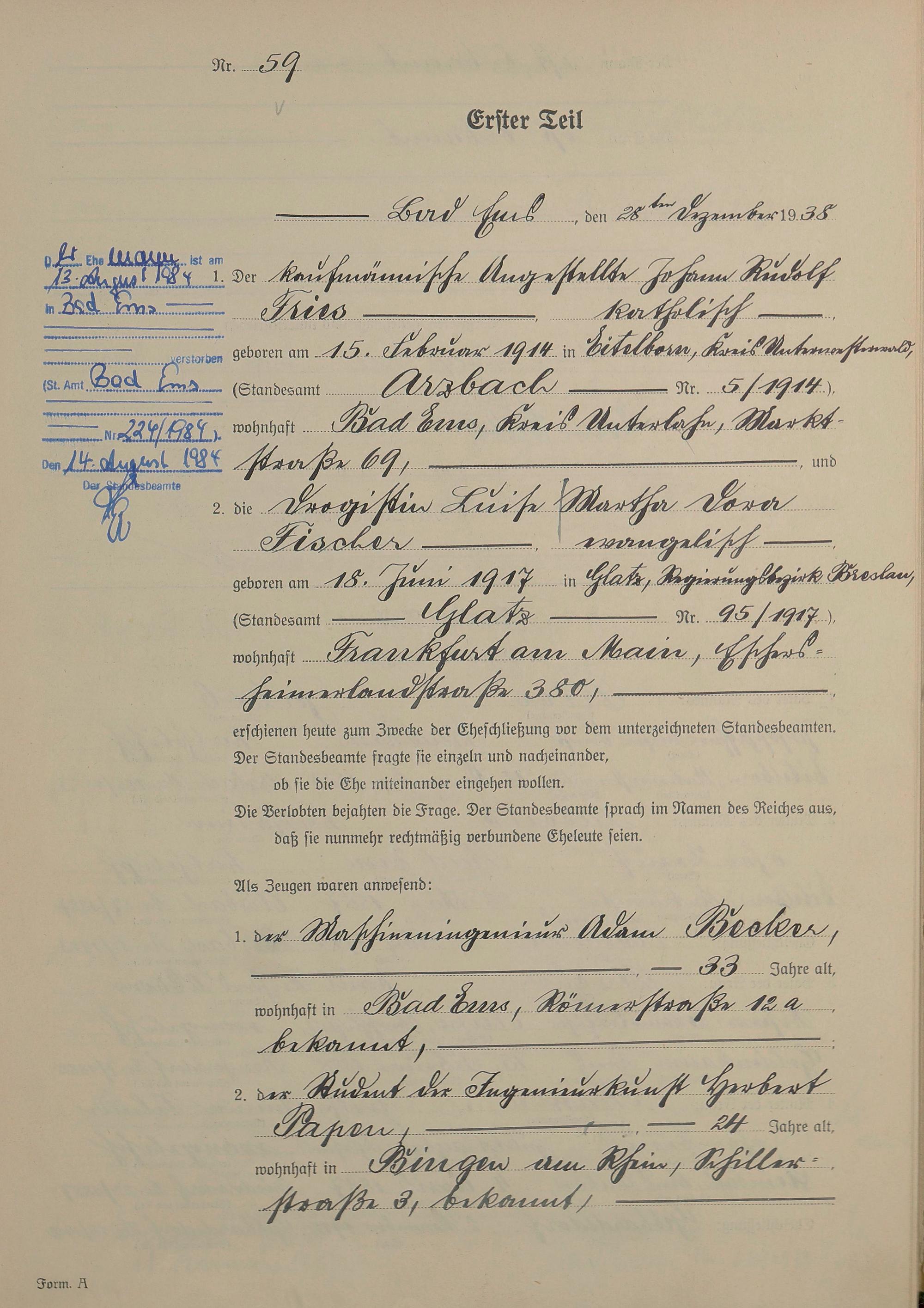 Heiratsregister 1938