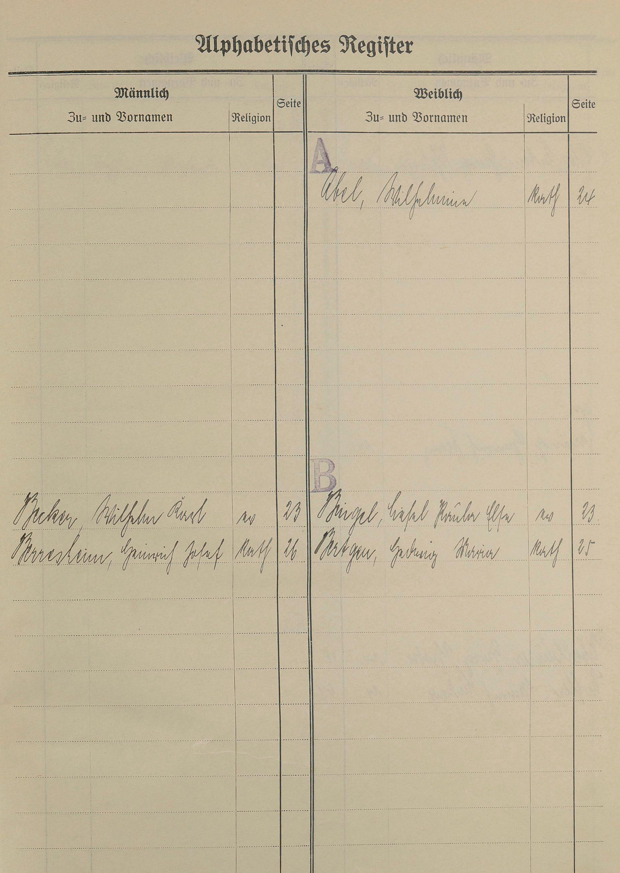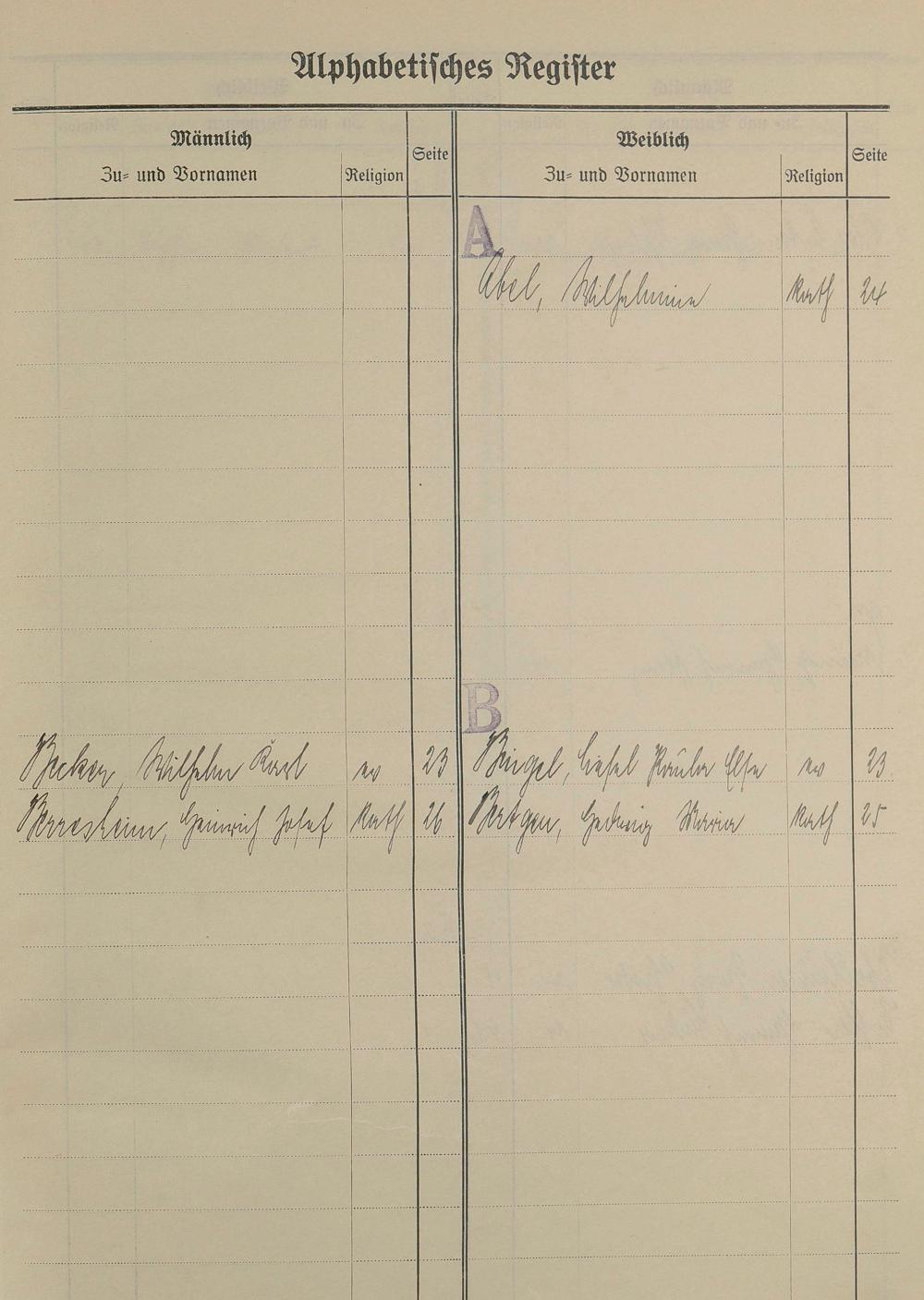 Heiratsregister 1938