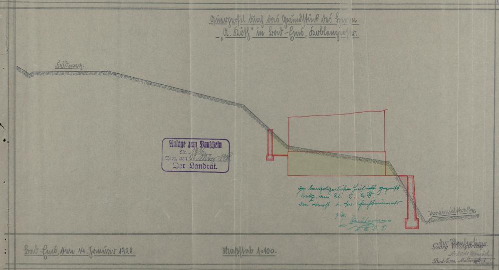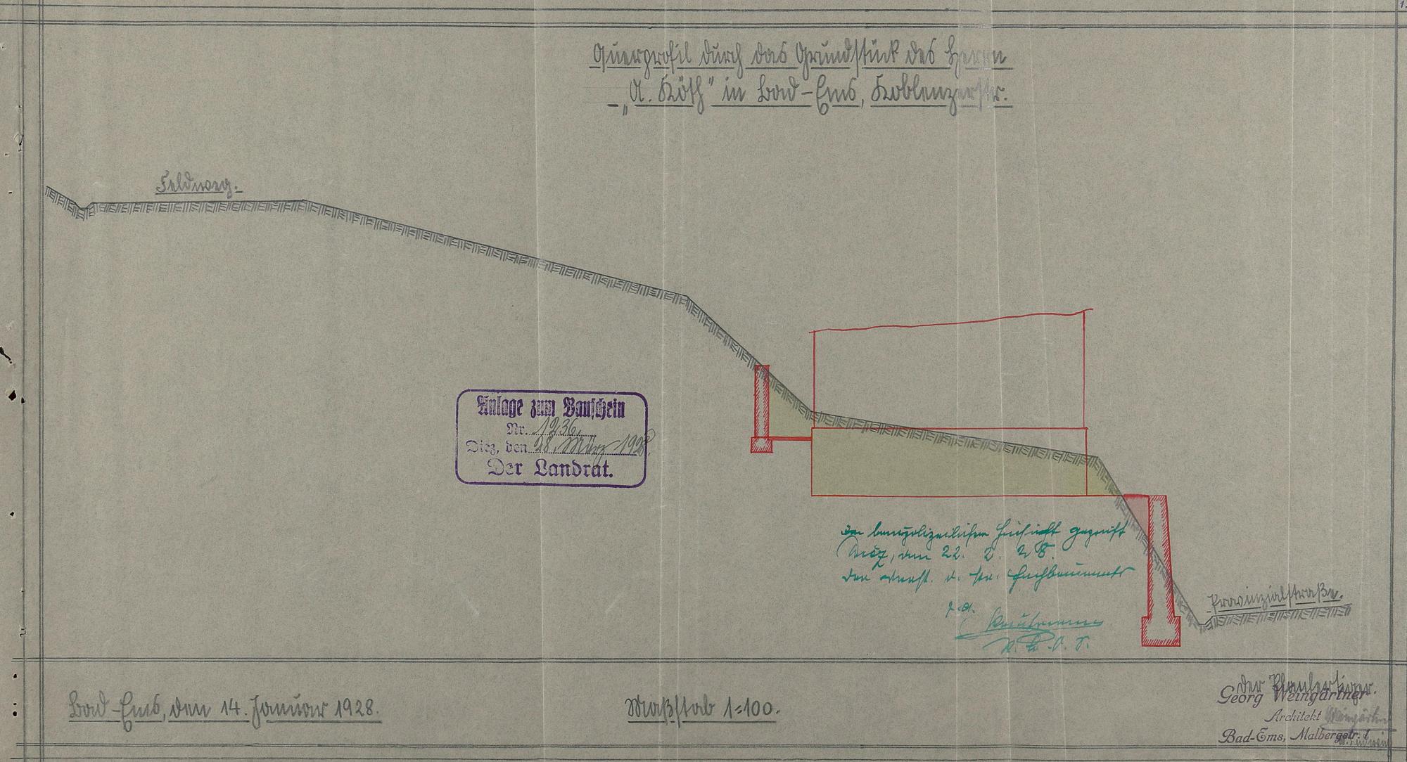 Stützmauer am Wohnhaus der Lina Köth Bad Ems Koblenzer Straße Nr. Flur 46 Nr. 176, 177 - Querprofil