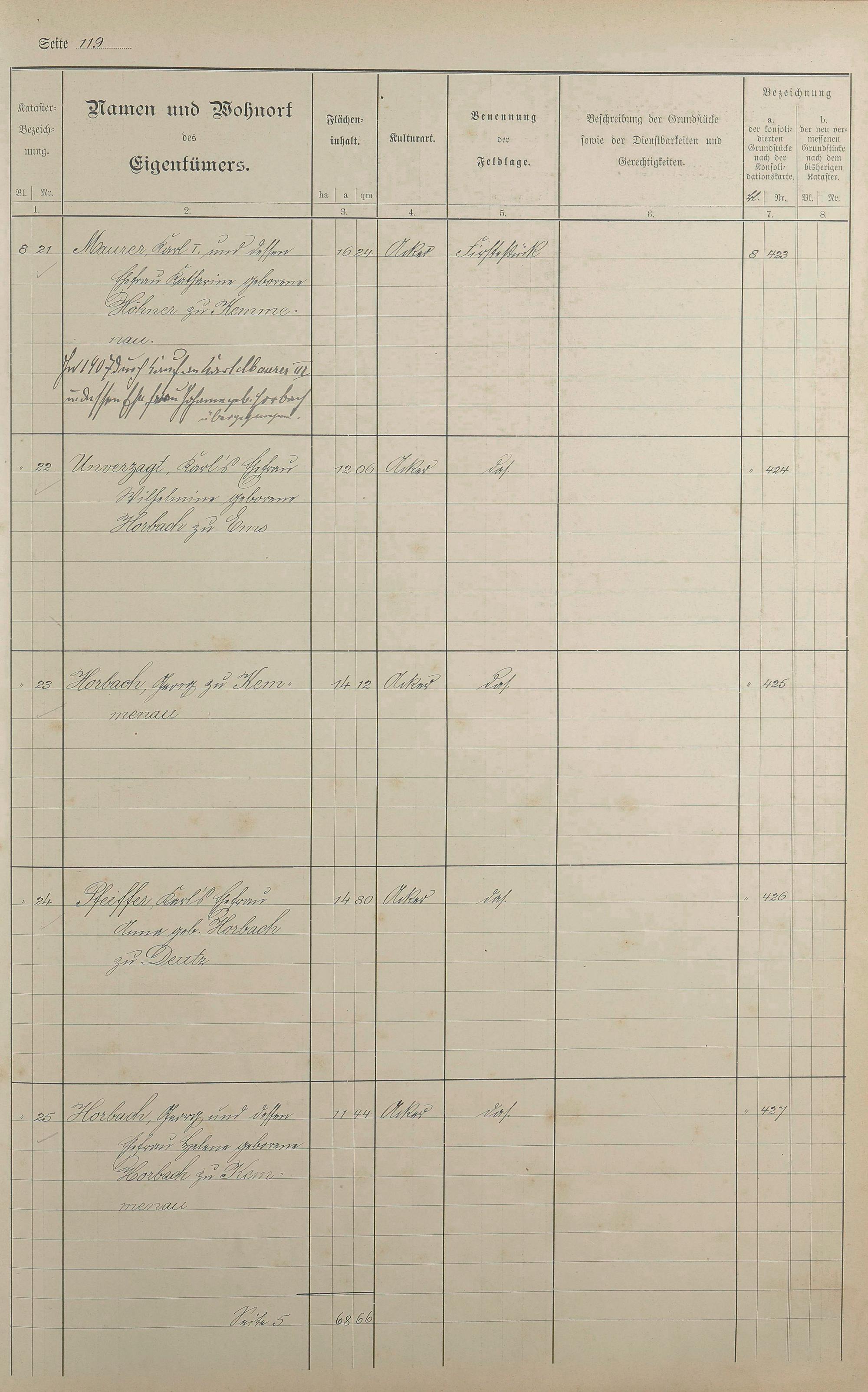 Lagerbuch der konsolidierten Gemarkung Kemmenau von dem Königlichen Kommissar für die Güterkonsolidation Regierungsrat Schiffler und Vermessungsbeamten Steinbichler