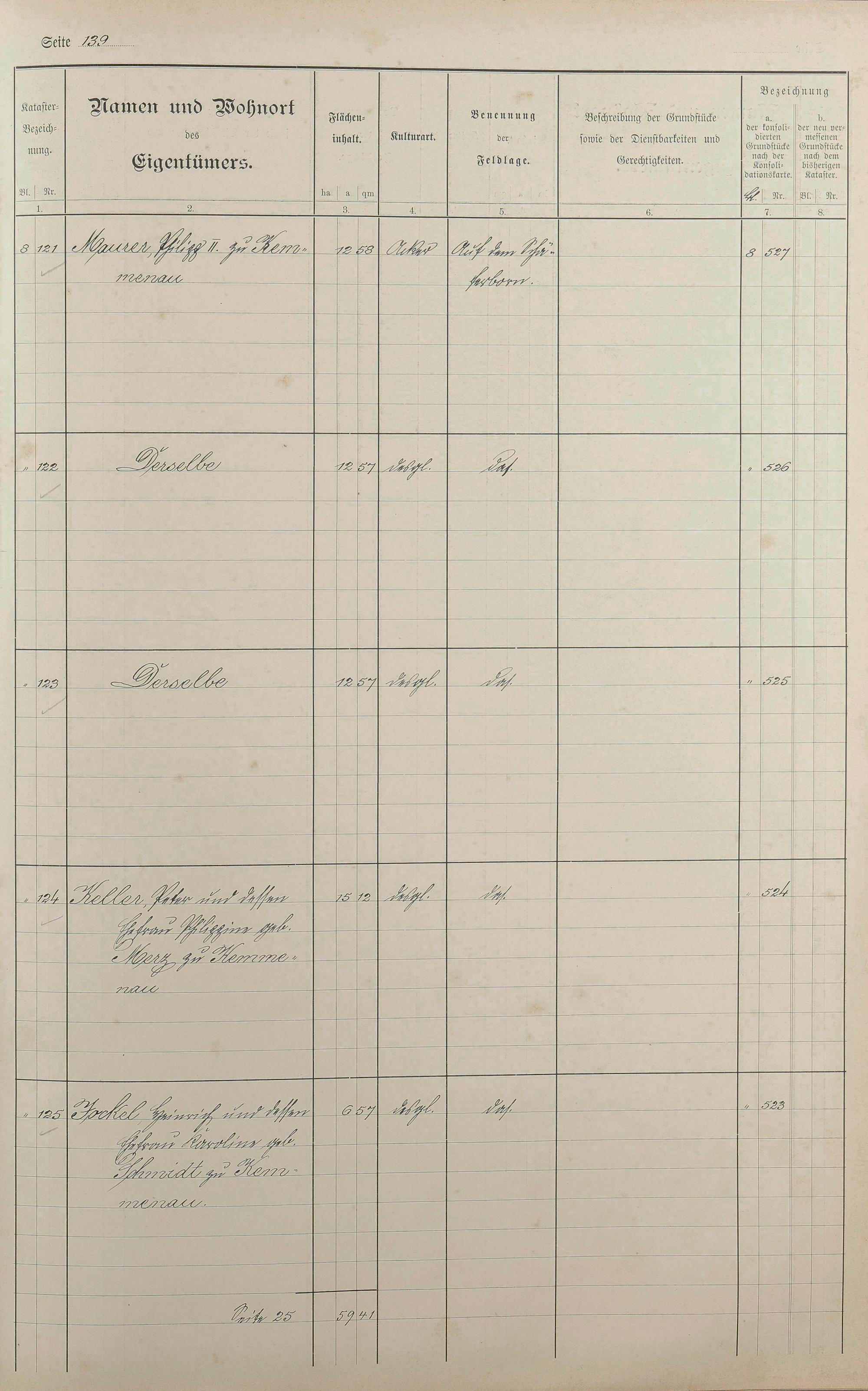 1: Lagerbuch der konsolidierten Gemarkung Kemmenau von dem Königlichen Kommissar...