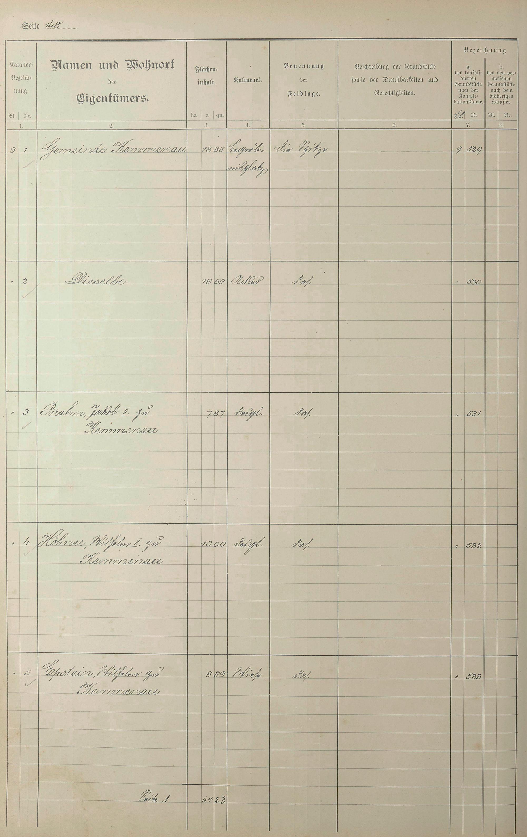 1: Lagerbuch der konsolidierten Gemarkung Kemmenau von dem Königlichen Kommissar...