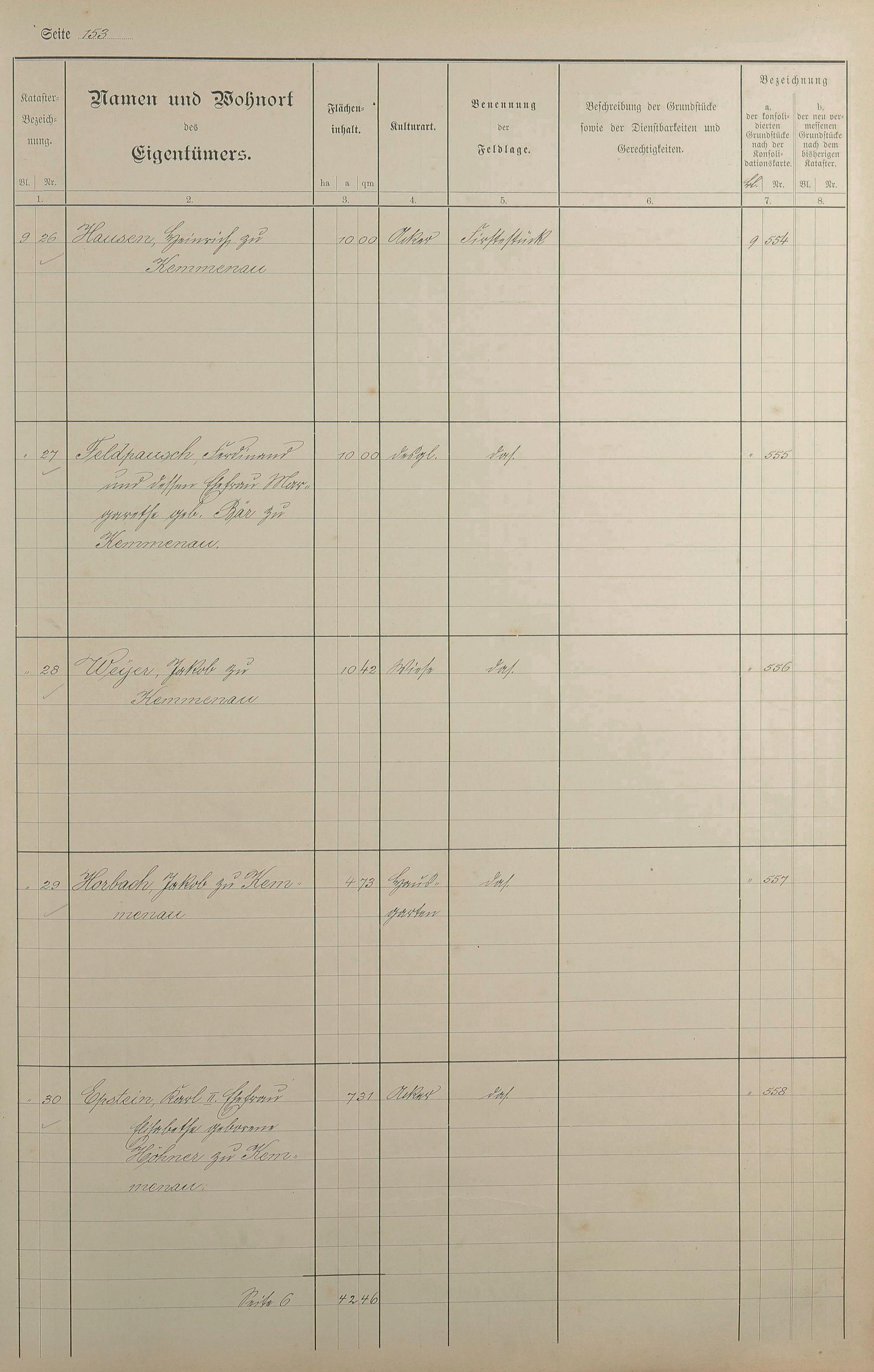 1: Lagerbuch der konsolidierten Gemarkung Kemmenau von dem Königlichen Kommissar...