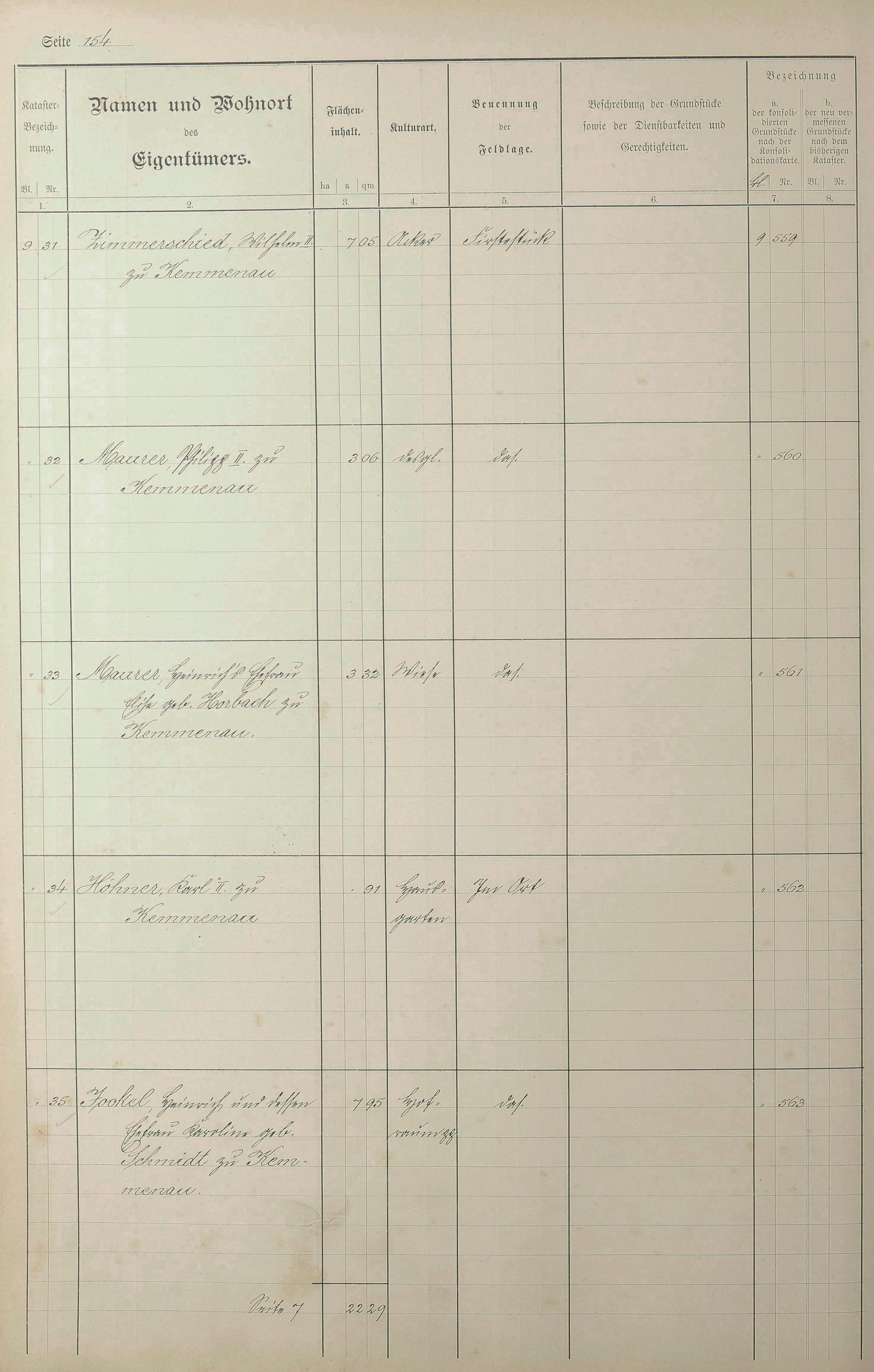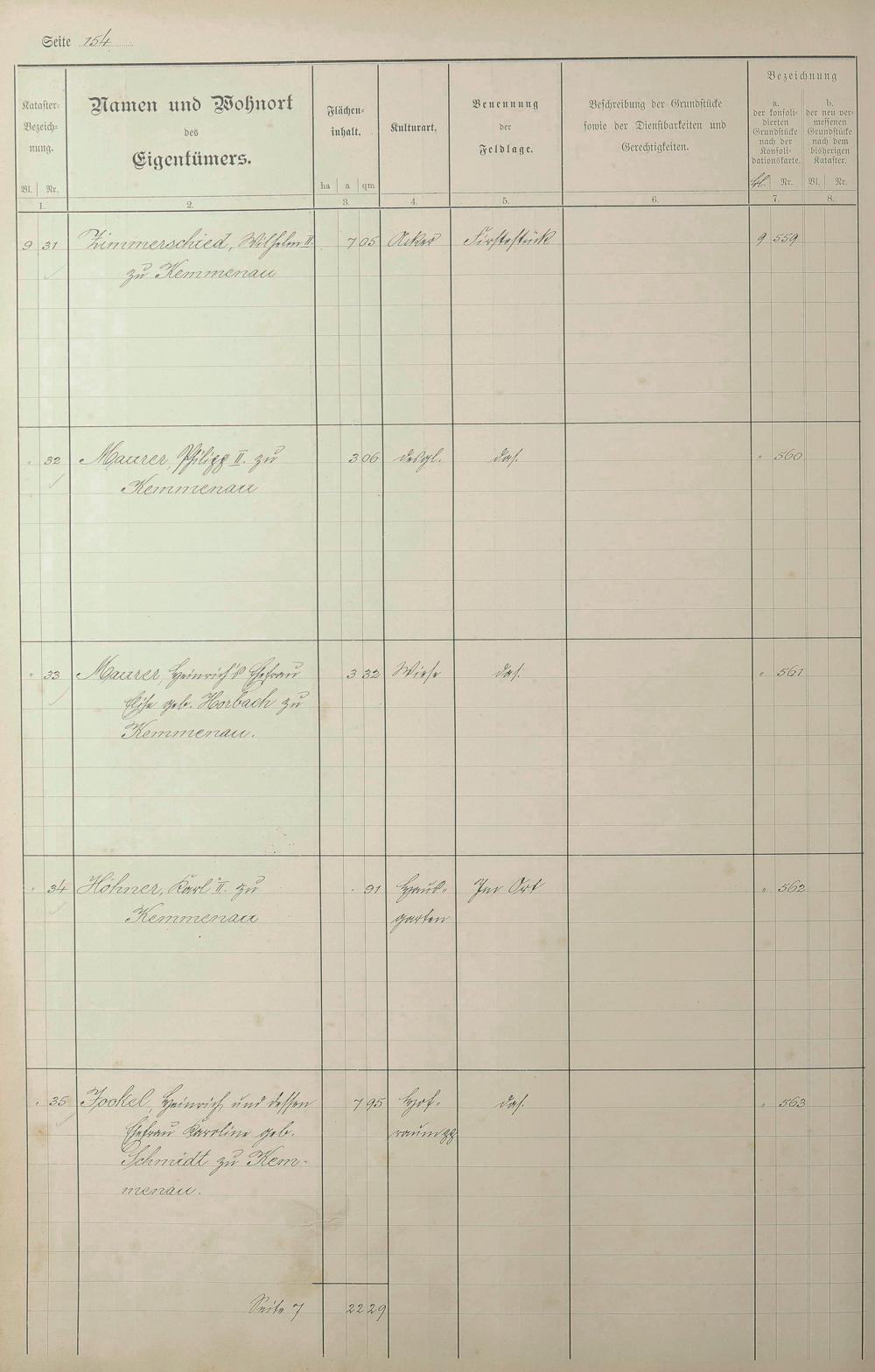 1: Lagerbuch der konsolidierten Gemarkung Kemmenau von dem Königlichen Kommissar...