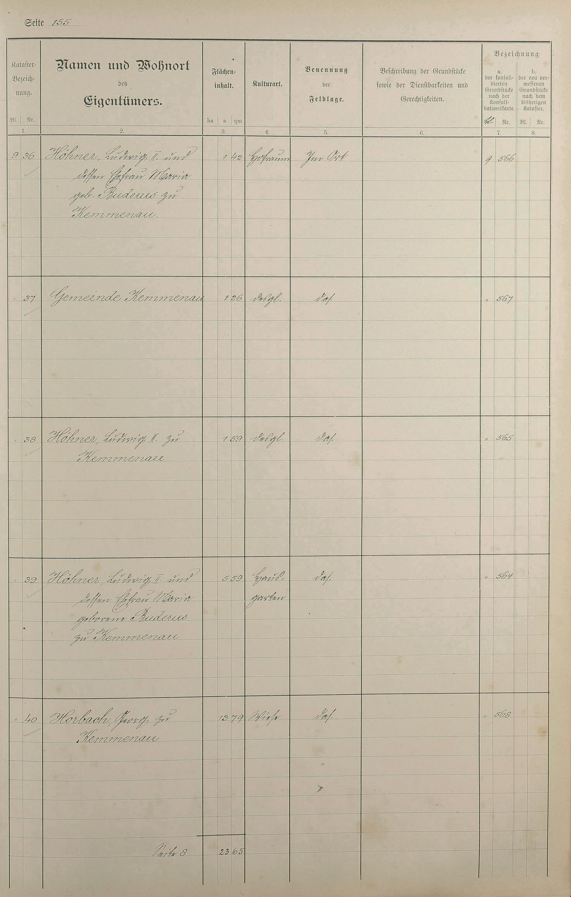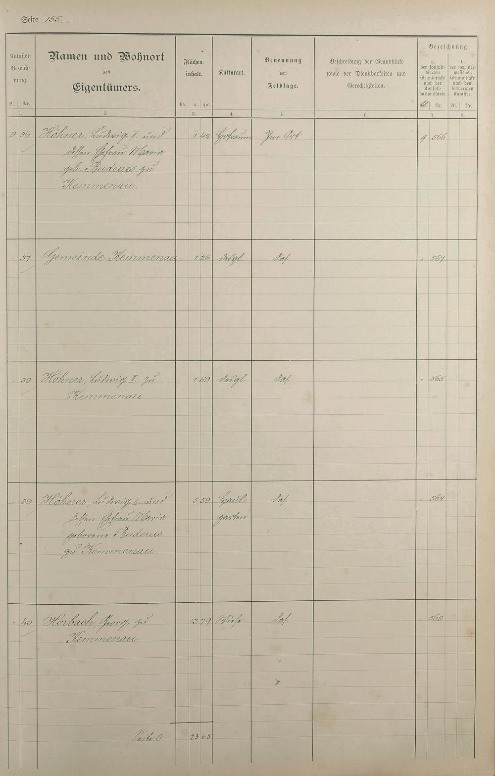 Lagerbuch der konsolidierten Gemarkung Kemmenau von dem Königlichen Kommissar für die Güterkonsolidation Regierungsrat Schiffler und Vermessungsbeamten Steinbichler